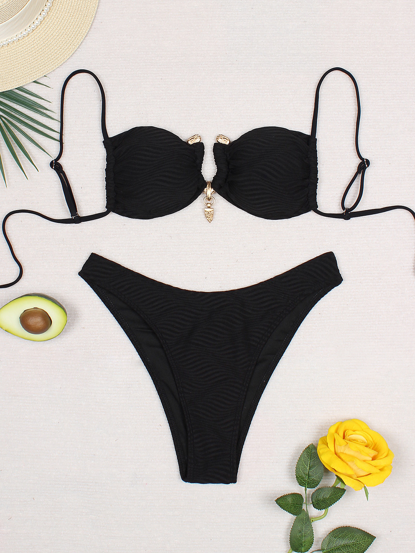 2025 유럽과 미국의 섹시한 비키니 여성 분할 수영복 유럽과 미국 수영복 아마존 크로스 보더 단색 높은 허리