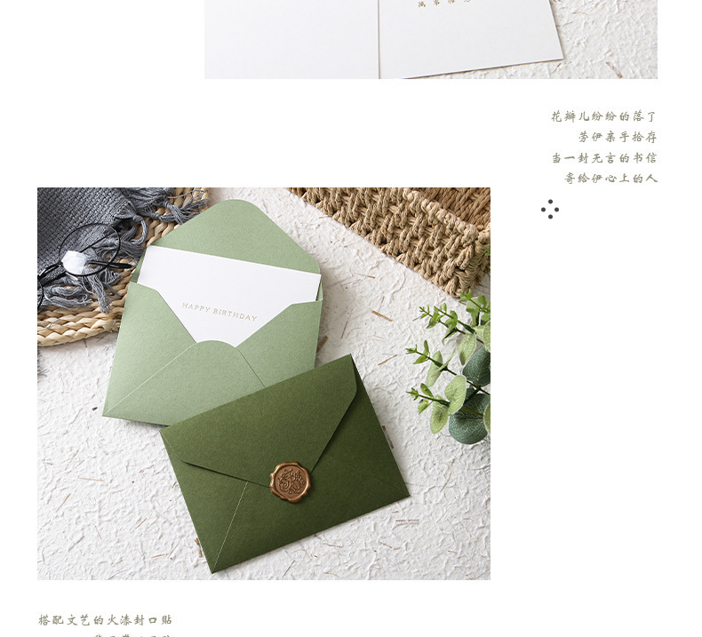 아보카도 그린 올리브 그린 신선한 스타일 모리 스타일 문학 결혼식 두꺼운 높은 수준의 휴일 발렌타인 데이 표현 봉투