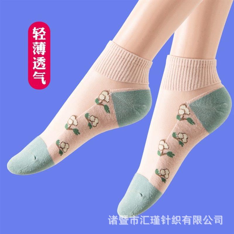 여름 얼음 실크 짧은 튜브 면 하단 크리스탈 양말 유리 실크 짧은 자수 캐럿 보트 양말 통기성 안티 후크 실크 여성용 실크 스타킹스토어 가기