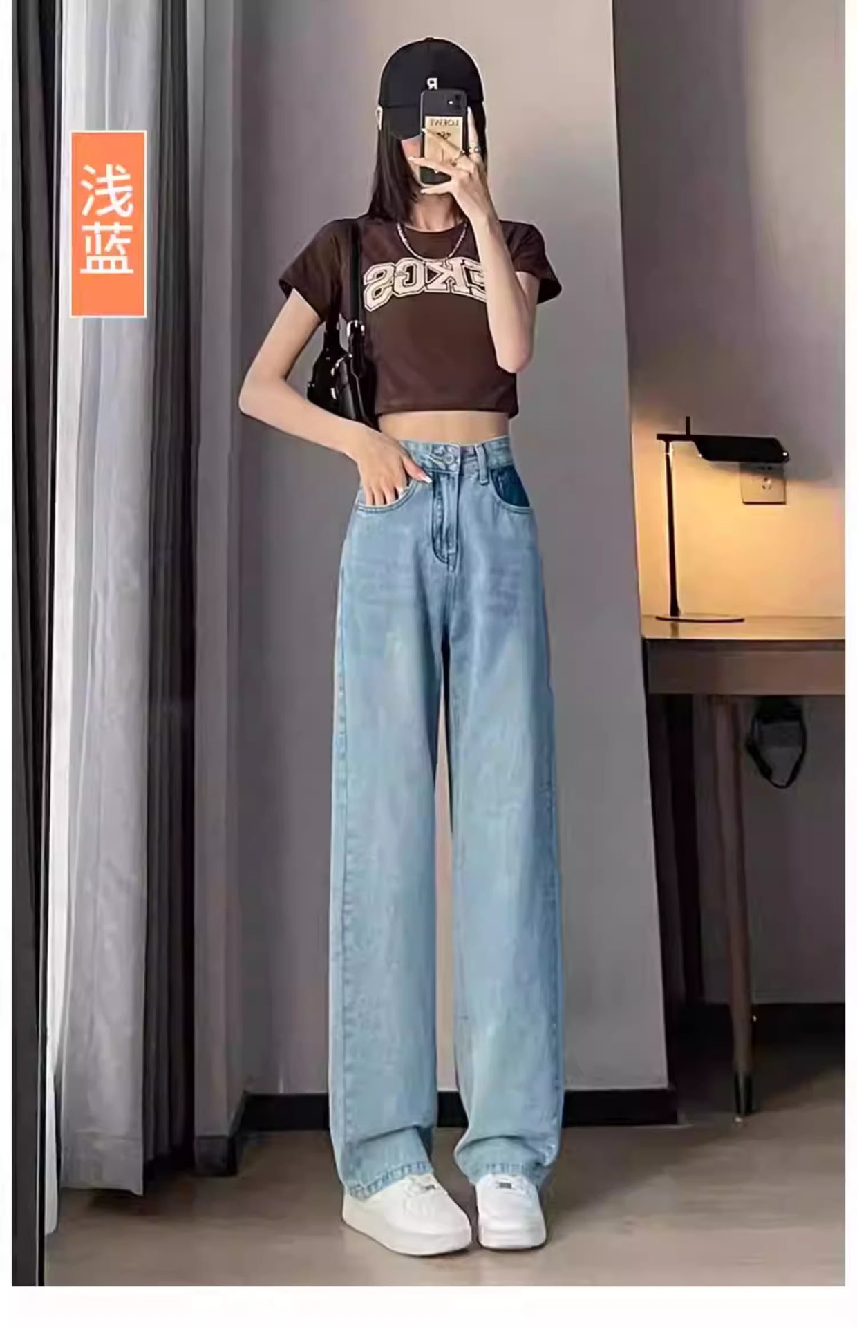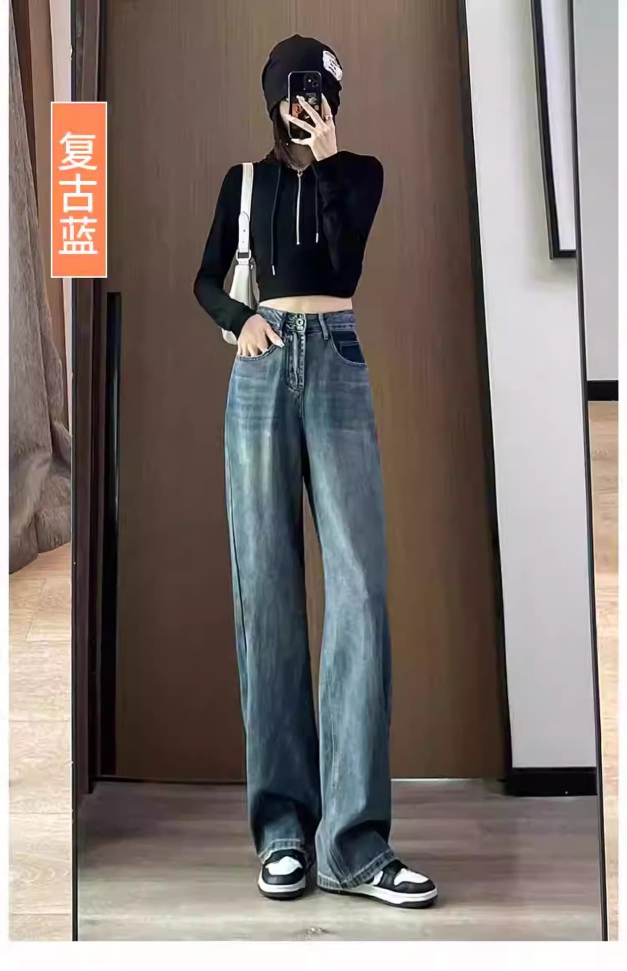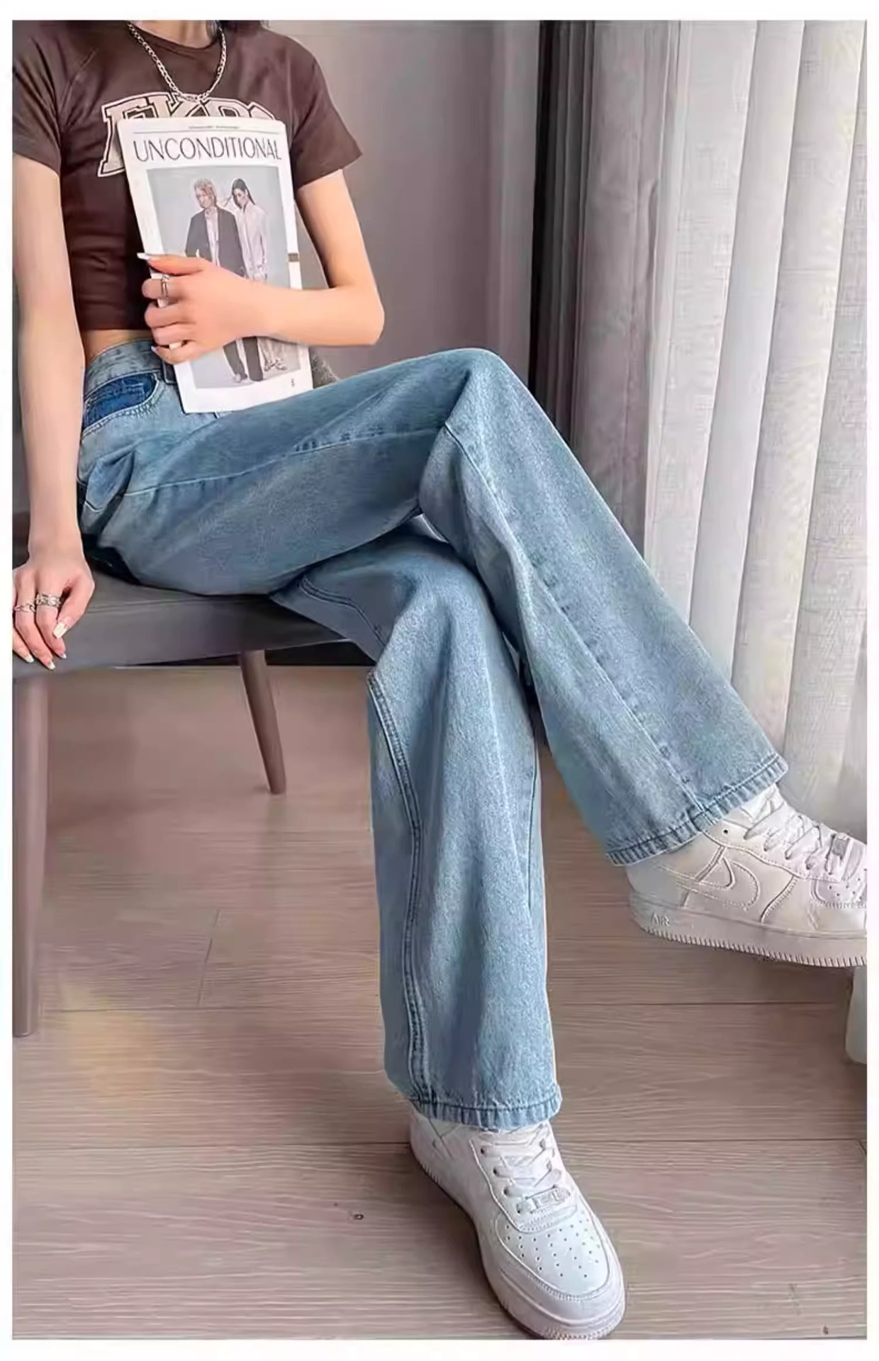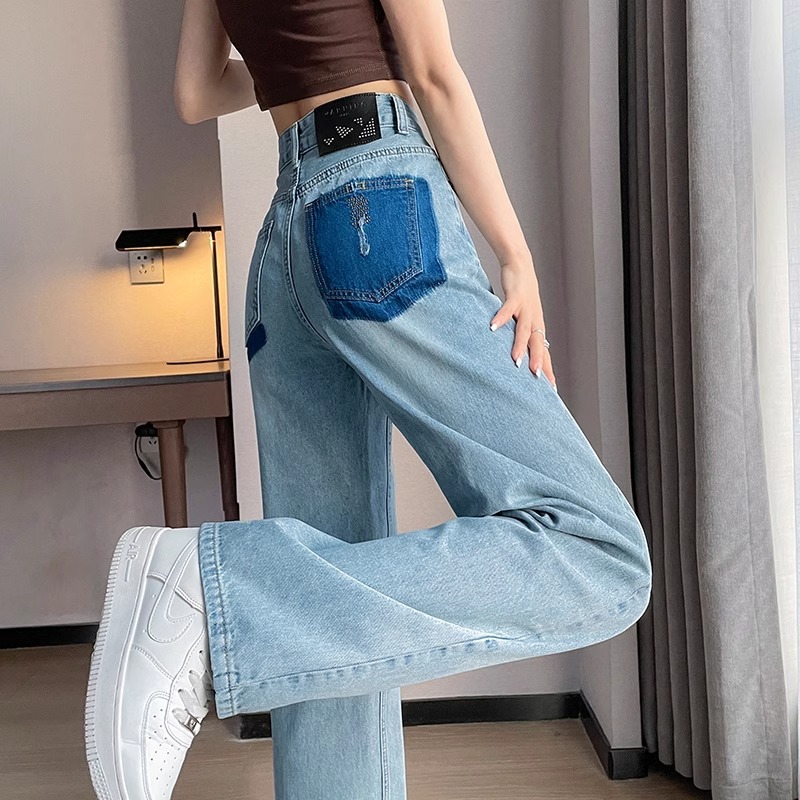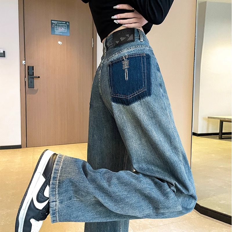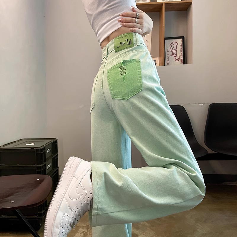 화이트 청바지 여성의 스트레이트 2025 봄과 가을 기모 새로운 아이보리 작은 디자인 감각 좁은 넓은 다리 바지스토어 가기