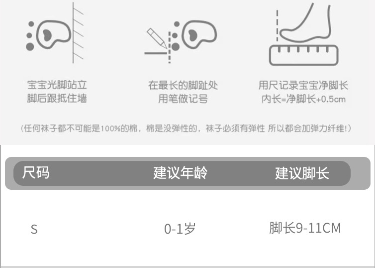 • S 사이즈 0-1세, 권장 발 길이 9-11CM