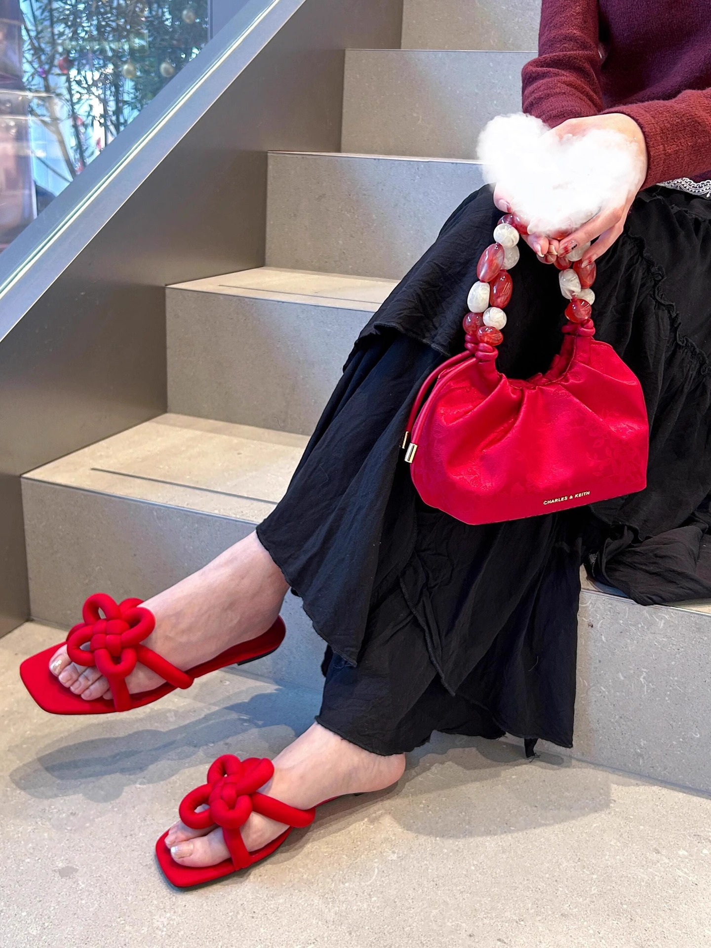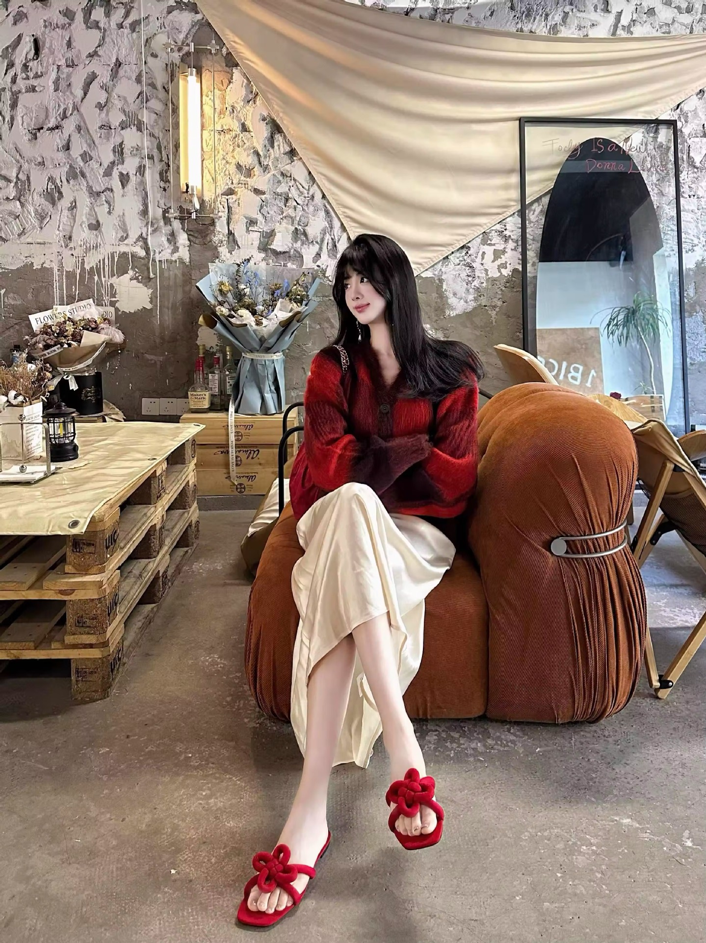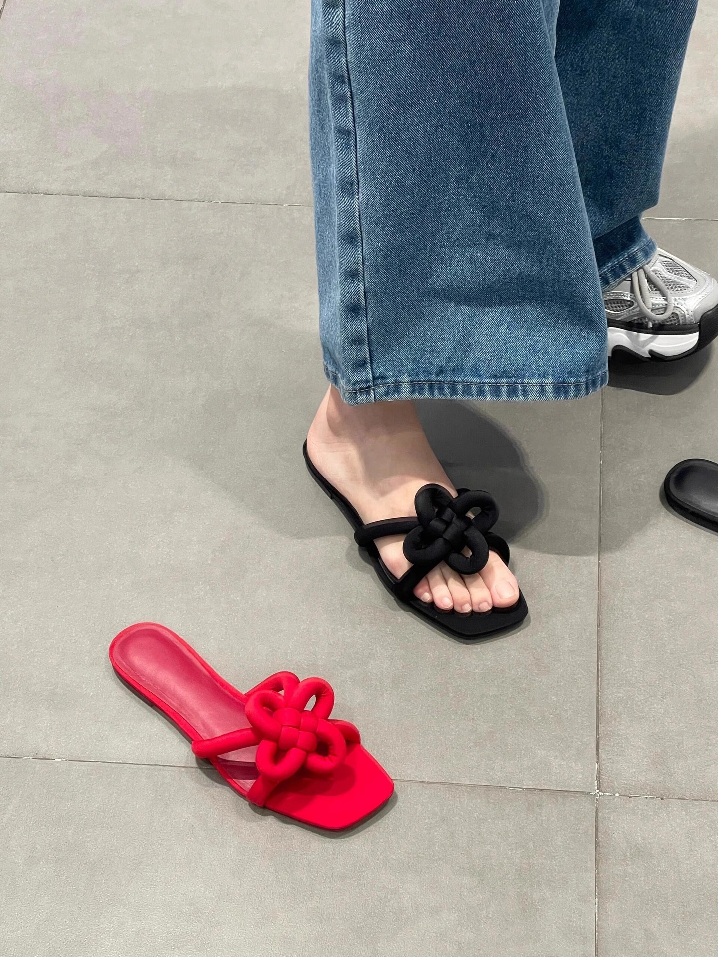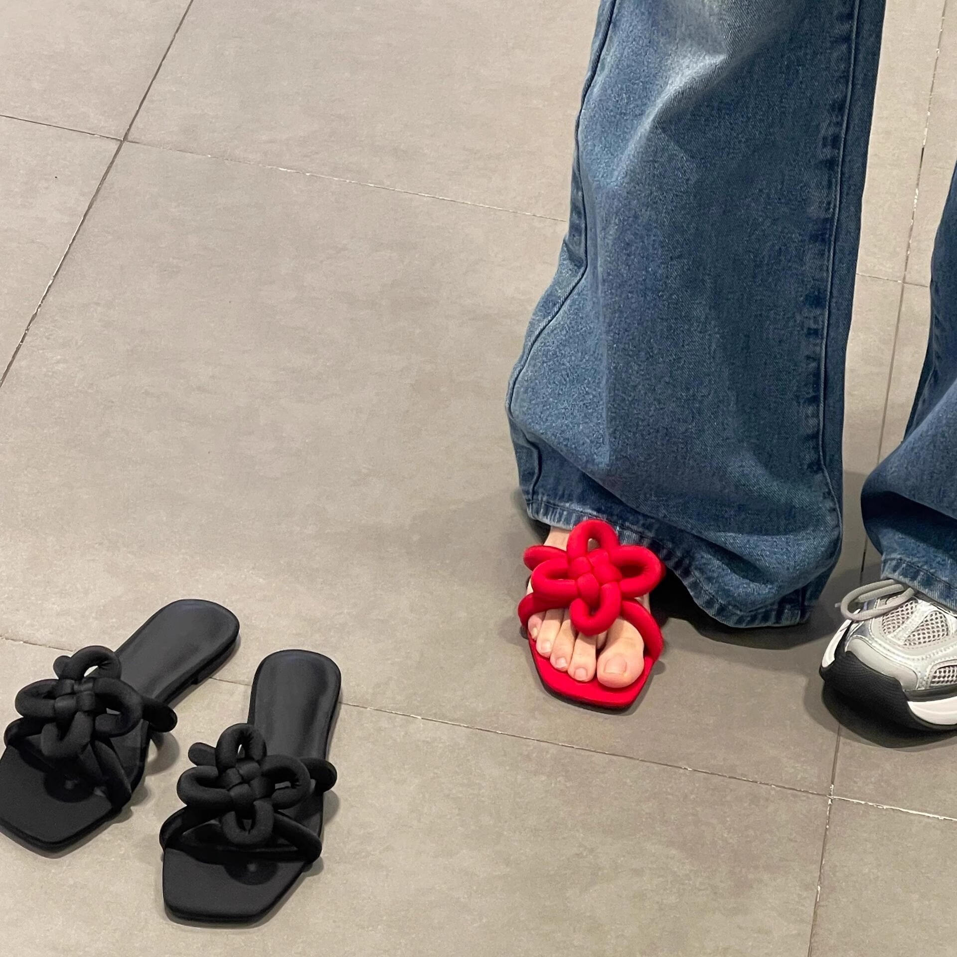 활 ~ 새로운 중국 스타일 슬리퍼 여성용 겉옷 오픈 발가락 레트로 중국 레드 플랫 캐주얼 여성용 슬리퍼