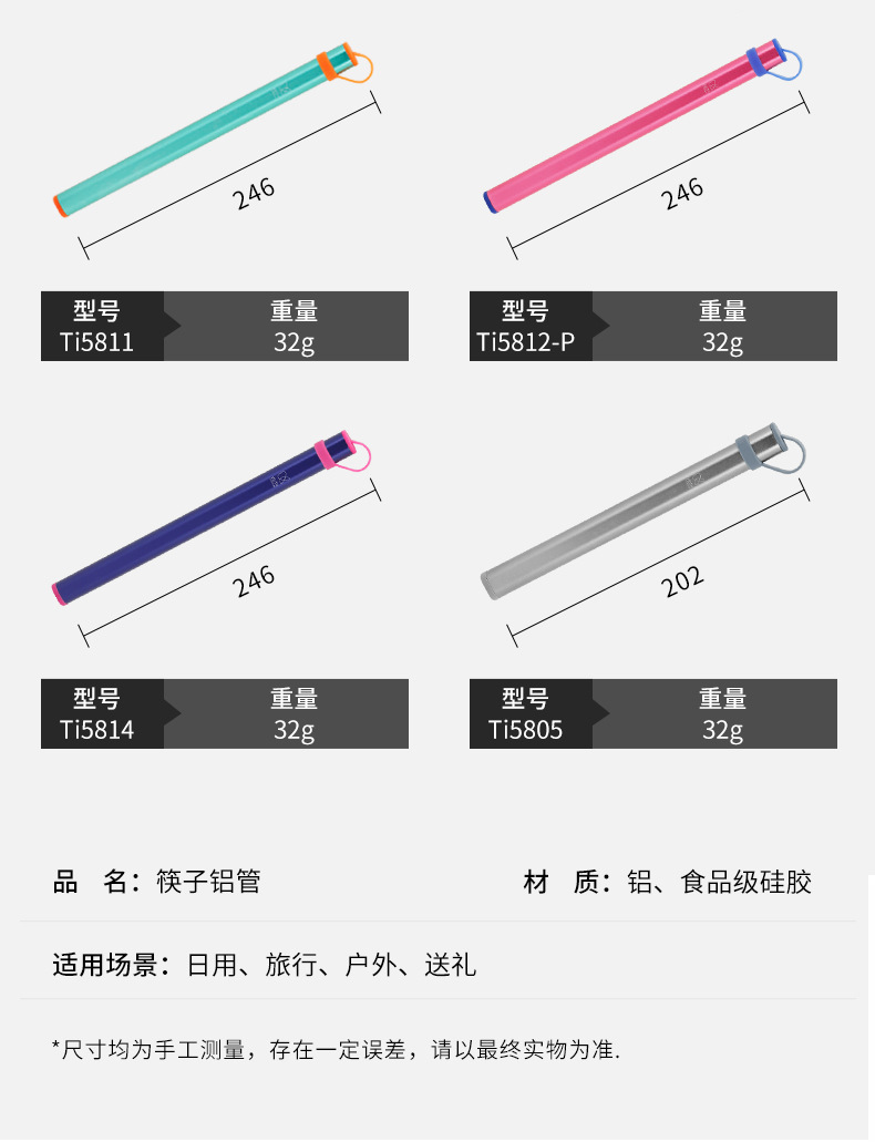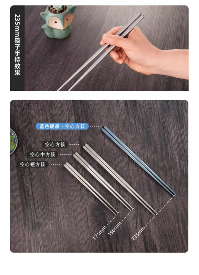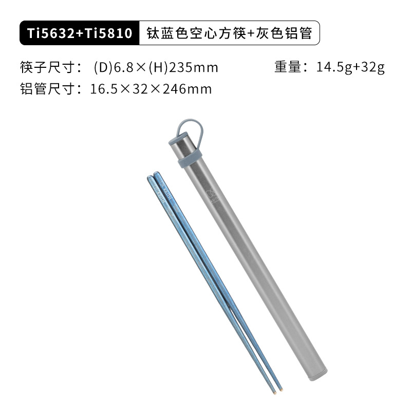• Ti5632 파란색 중공 사각 젓가락 23.5cm + Ti5810 회색 알루미늄 튜브