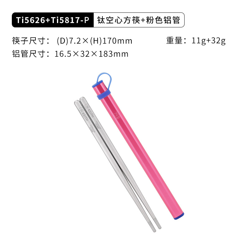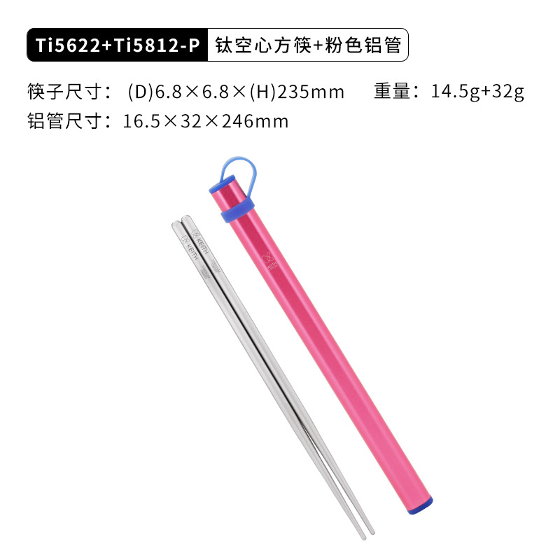 • Ti5626 중공사각젓가락 17cm+Ti5817-P 핑크알루미늄튜브