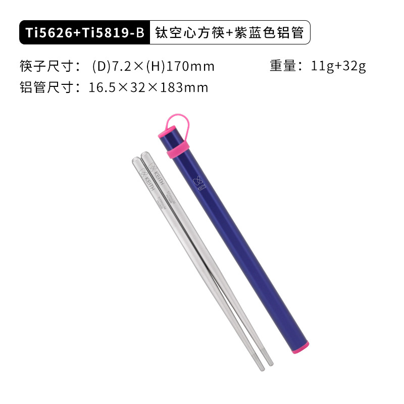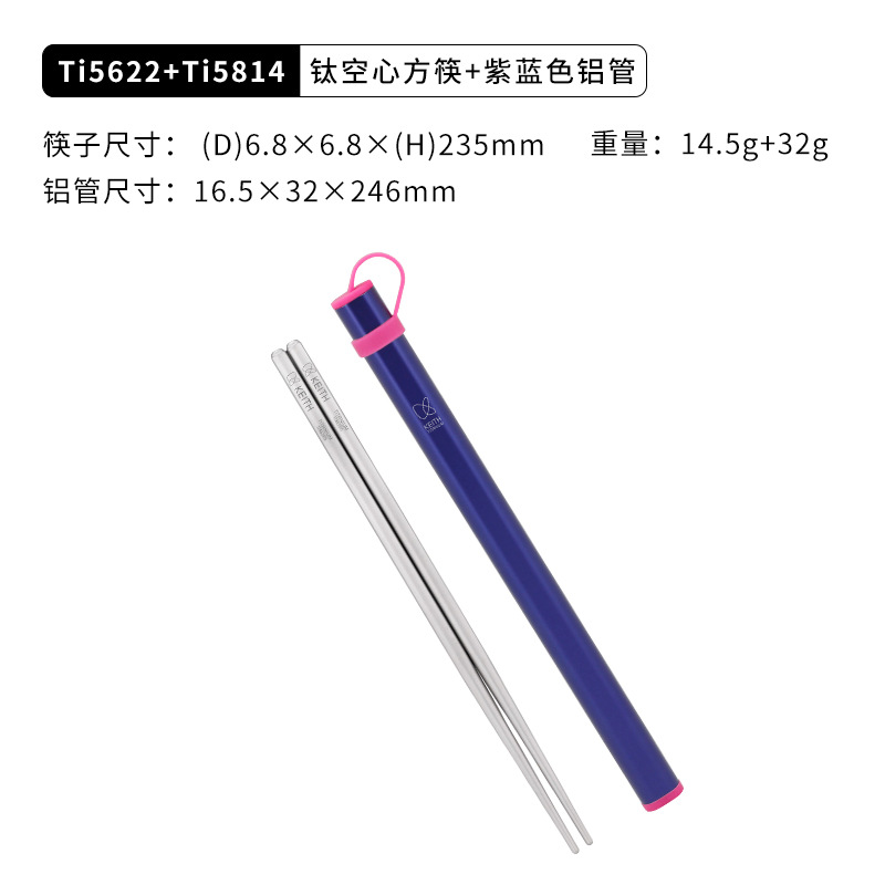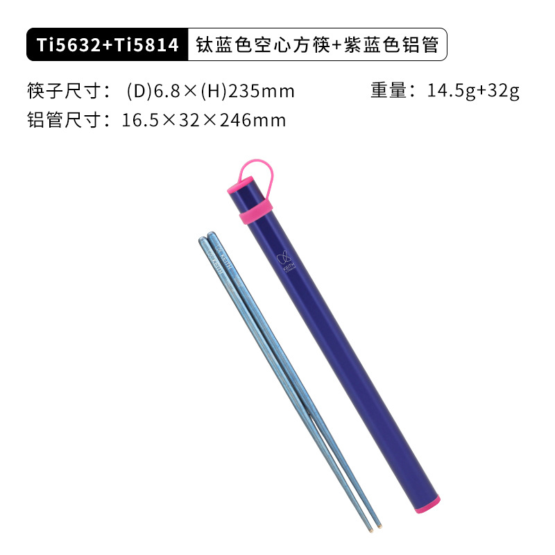 • Ti5632 파란색 중공 사각 젓가락 23.5cm + Ti5814 보라색 파란색 알루미늄 튜브