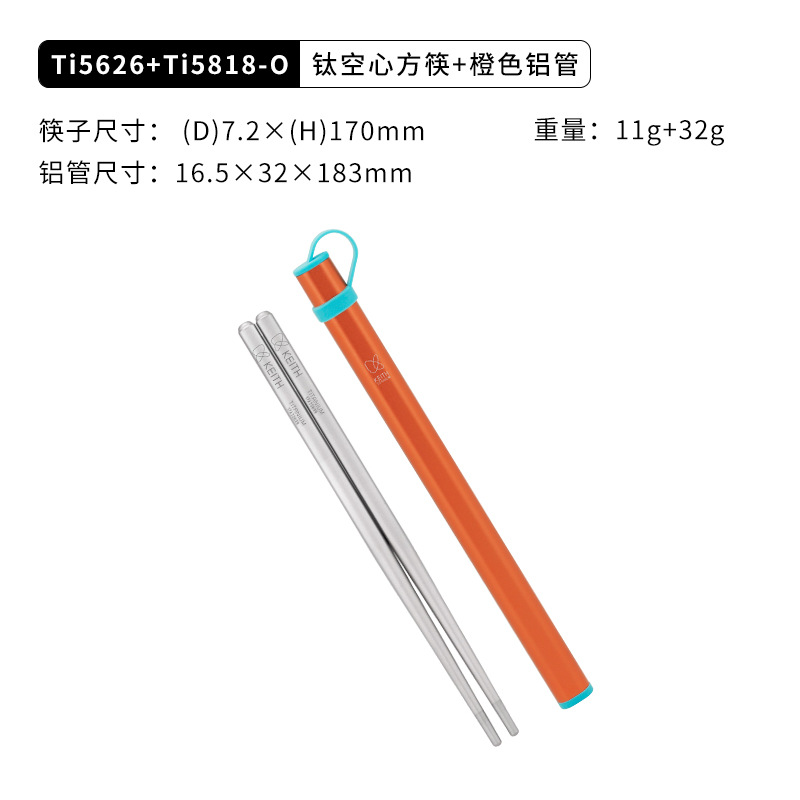 • Ti5626 중공사각젓가락 17cm+Ti5818-O 주황색 알루미늄튜브