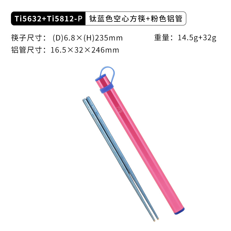 • Ti5632 파란색 중공사각젓가락 23.5cm+Ti5812-P 핑크알루미늄튜브