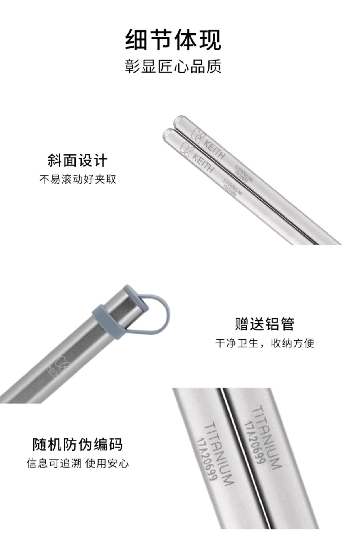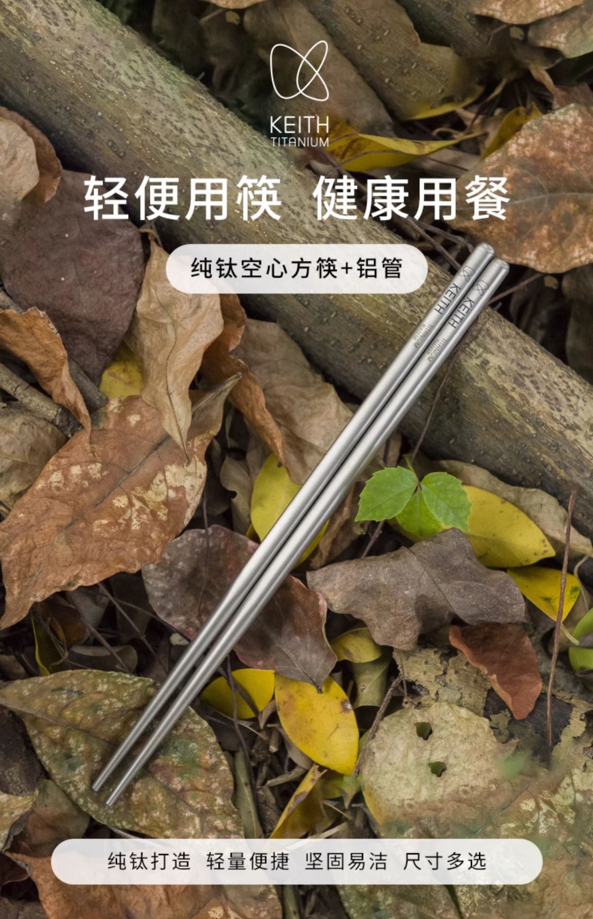 KEITH 장갑 순수 티타늄 젓가락 야외 휴대용 중공 사각형 젓가락 여행 캠핑 장비 공급 경량 티타늄 식기스토어 가기