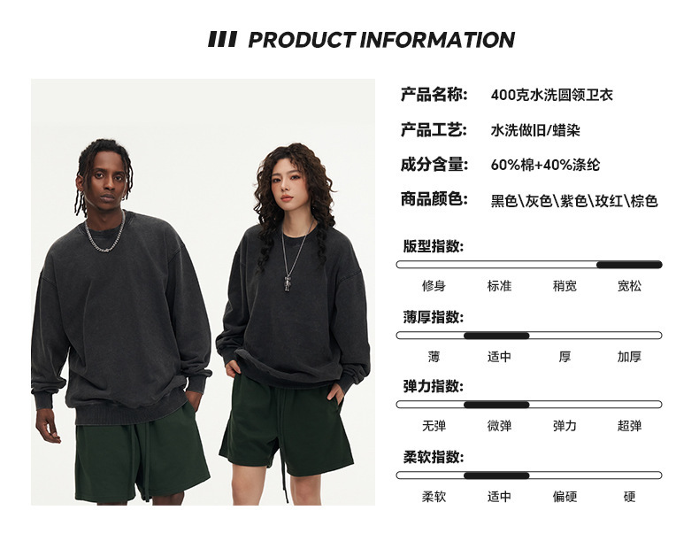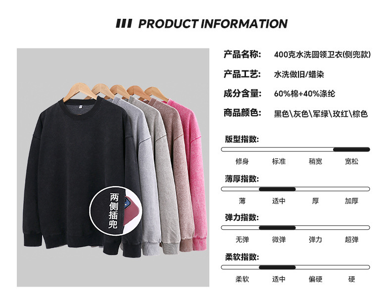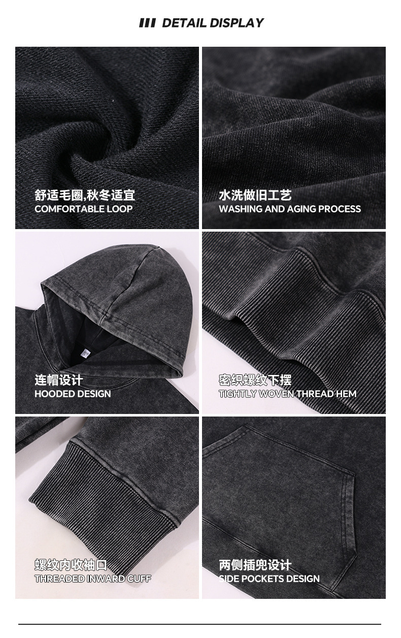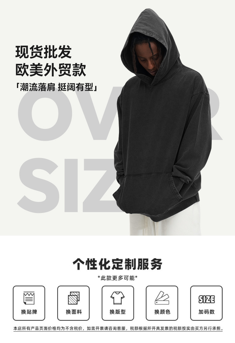 400G 유럽 및 미국 대형 사이즈 레트로 워싱 빈티지 후드티 크로스보더 루즈핏 왁스 염색 워싱 후드티 남성복 레트로 스타일