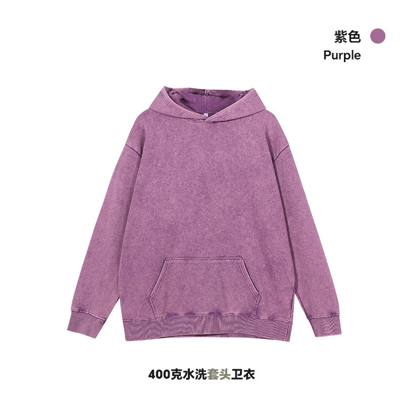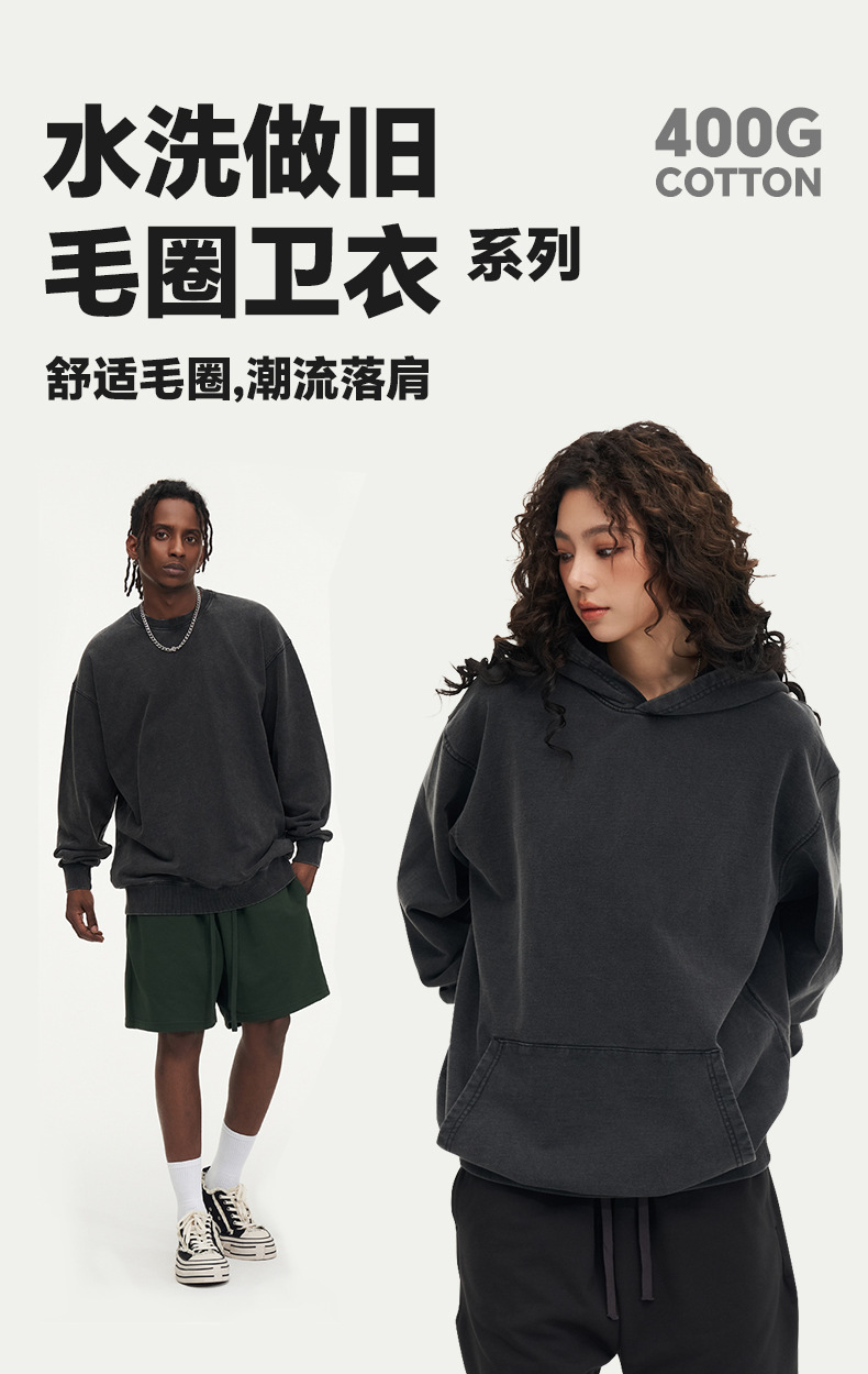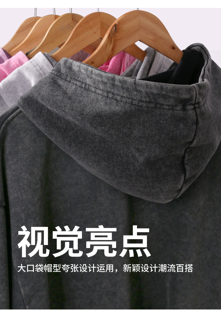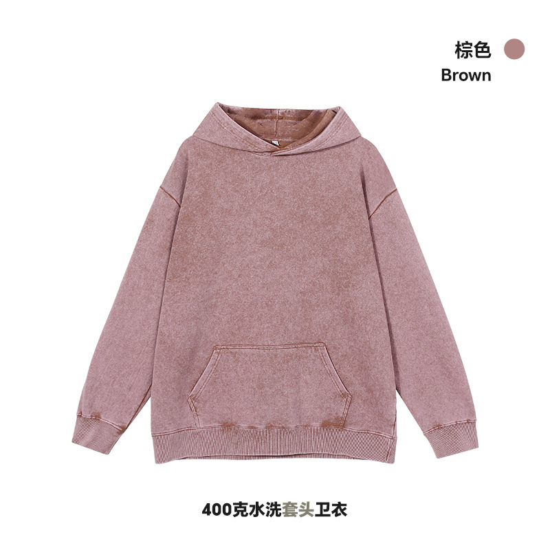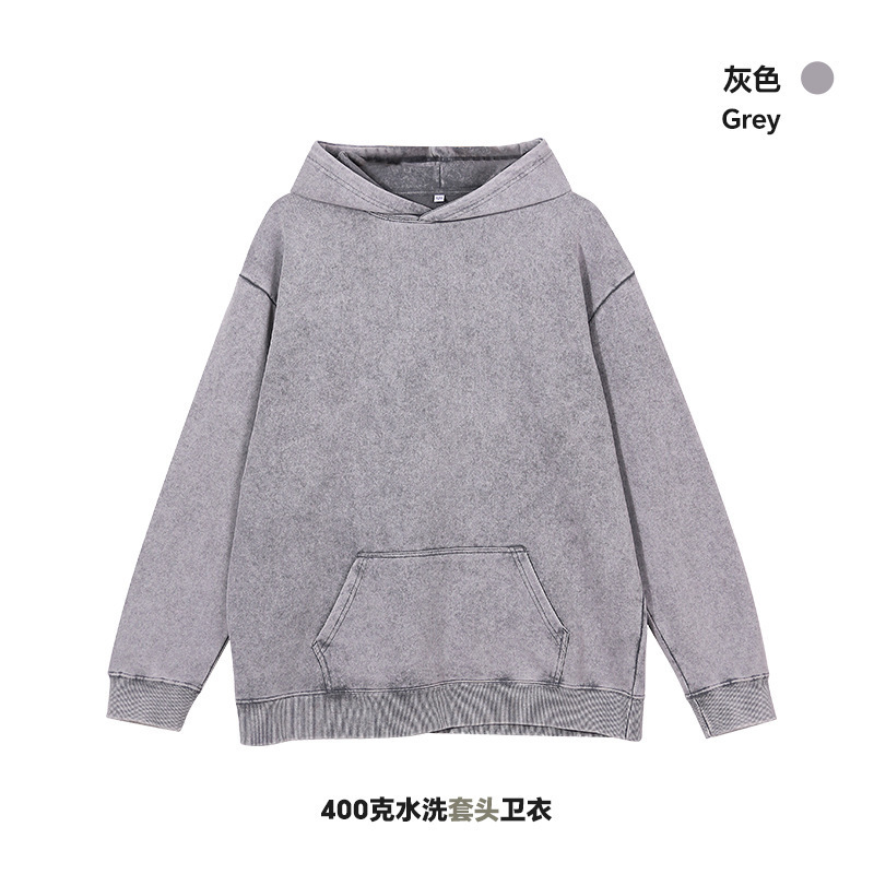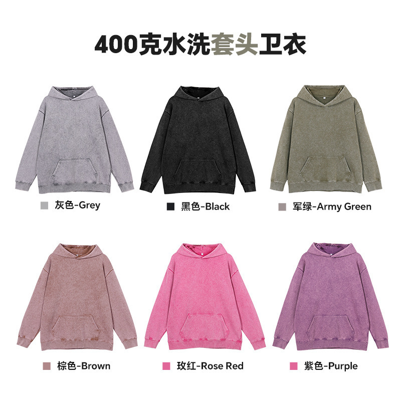 400G 유럽 및 미국 대형 사이즈 레트로 워싱 빈티지 후드티 크로스보더 루즈핏 왁스 염색 워싱 후드티 남성복 레트로 스타일스토어 가기