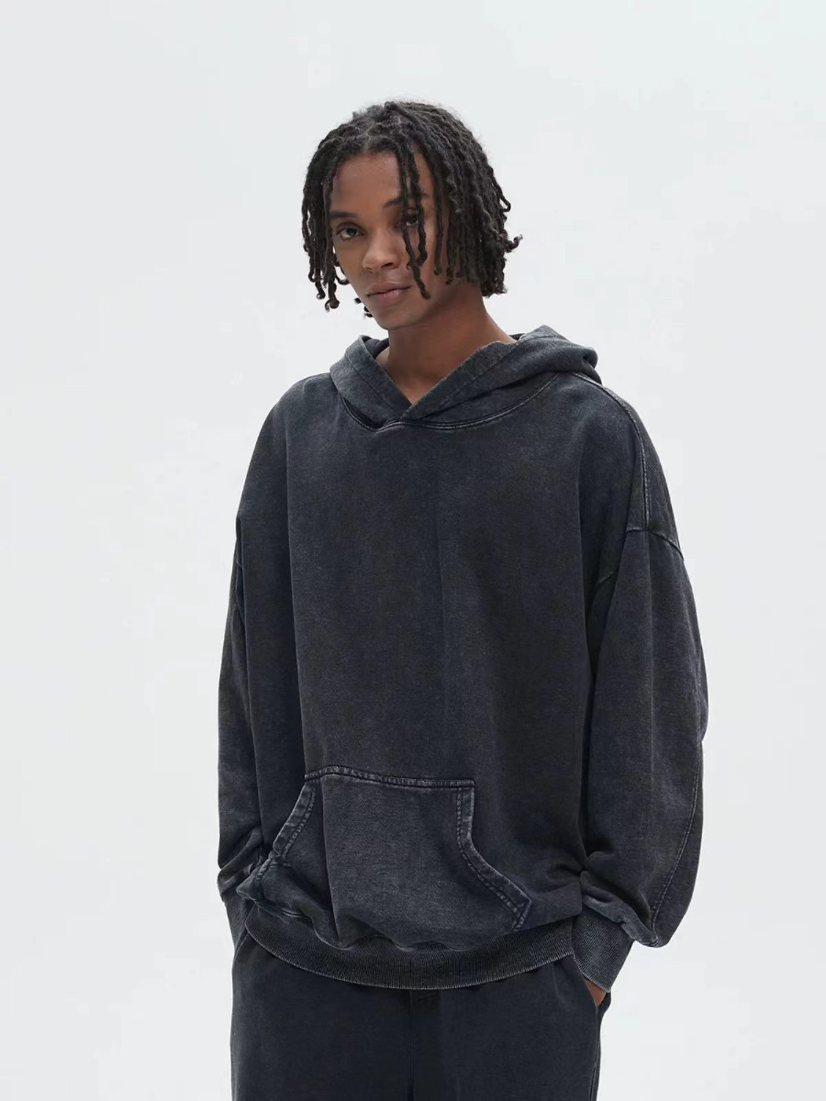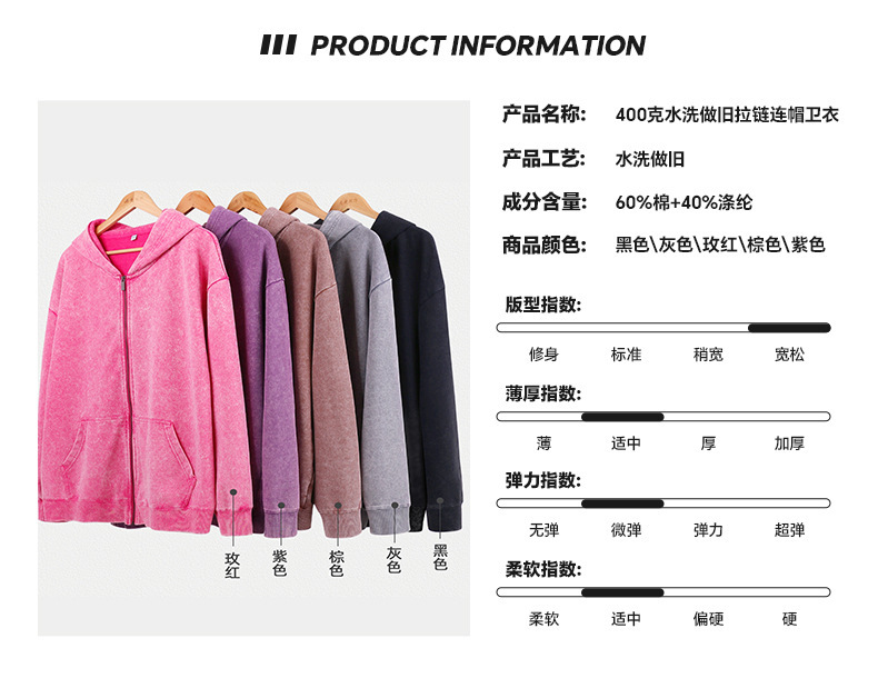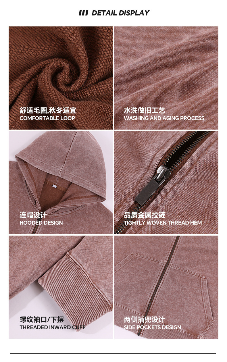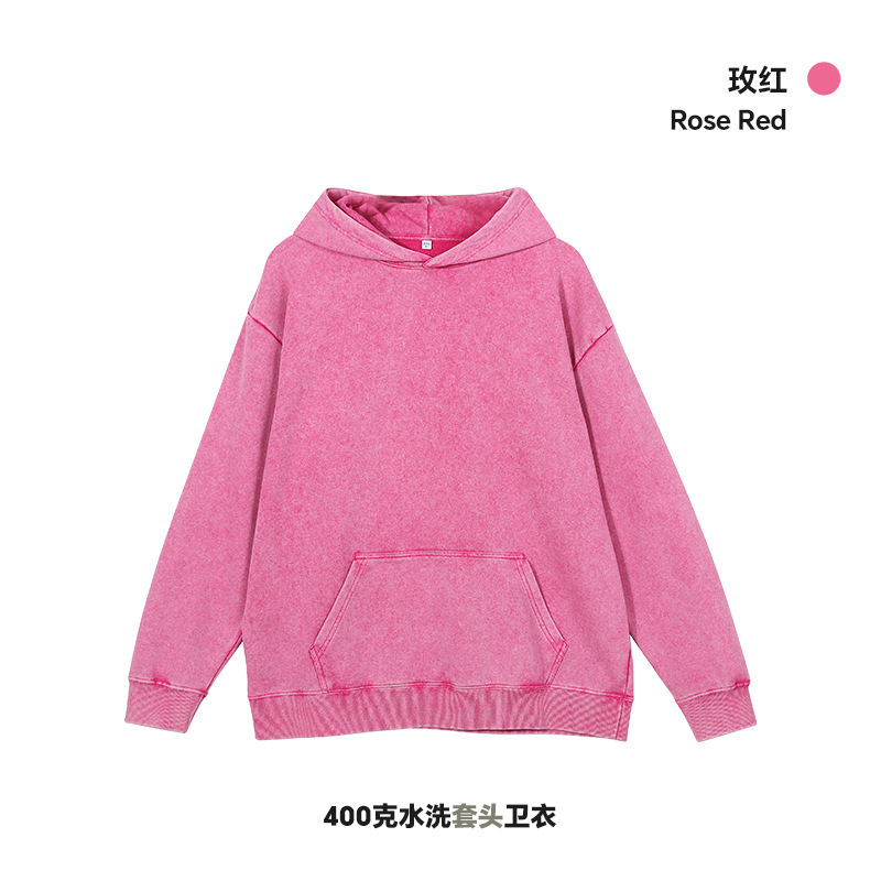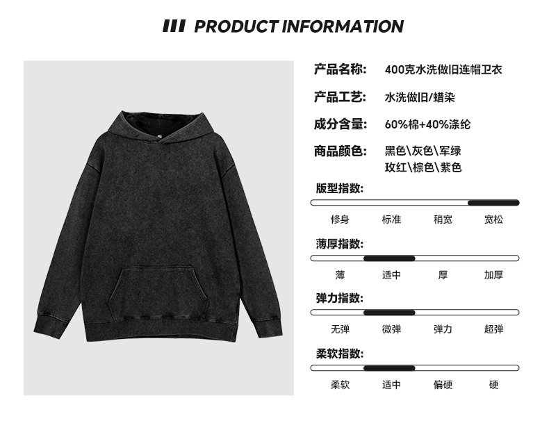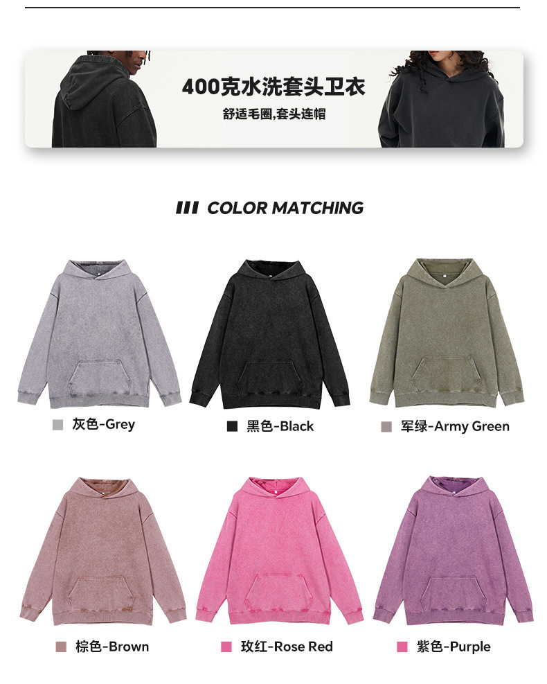 400G 유럽 및 미국 대형 사이즈 레트로 워싱 빈티지 후드티 크로스보더 루즈핏 왁스 염색 워싱 후드티 남성복 레트로 스타일스토어 가기