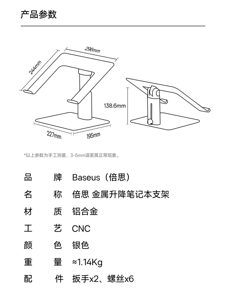 • Baseus 금속 리프팅 노트북 스탠드 실버