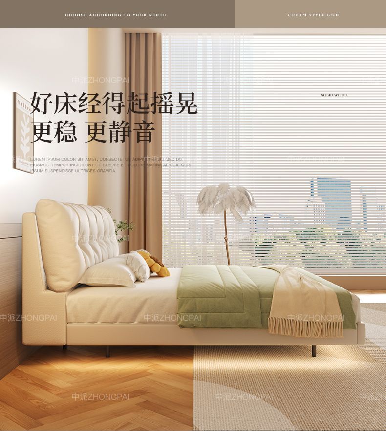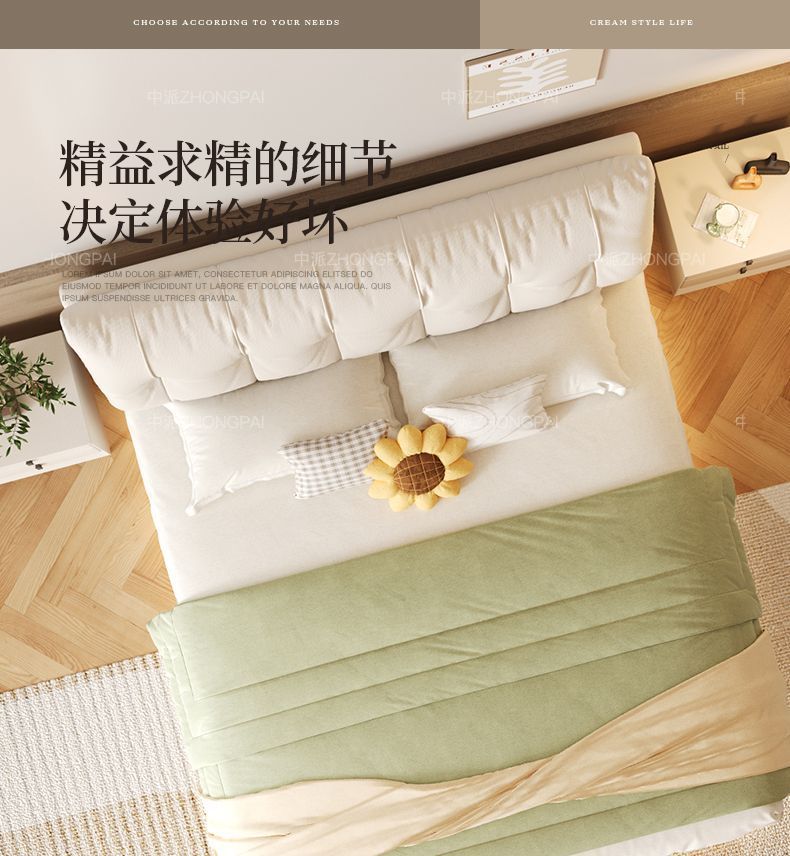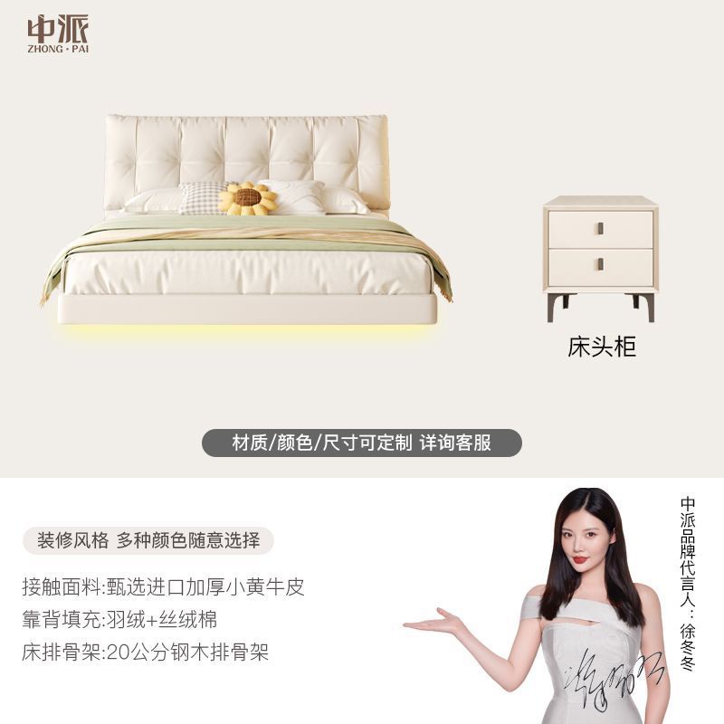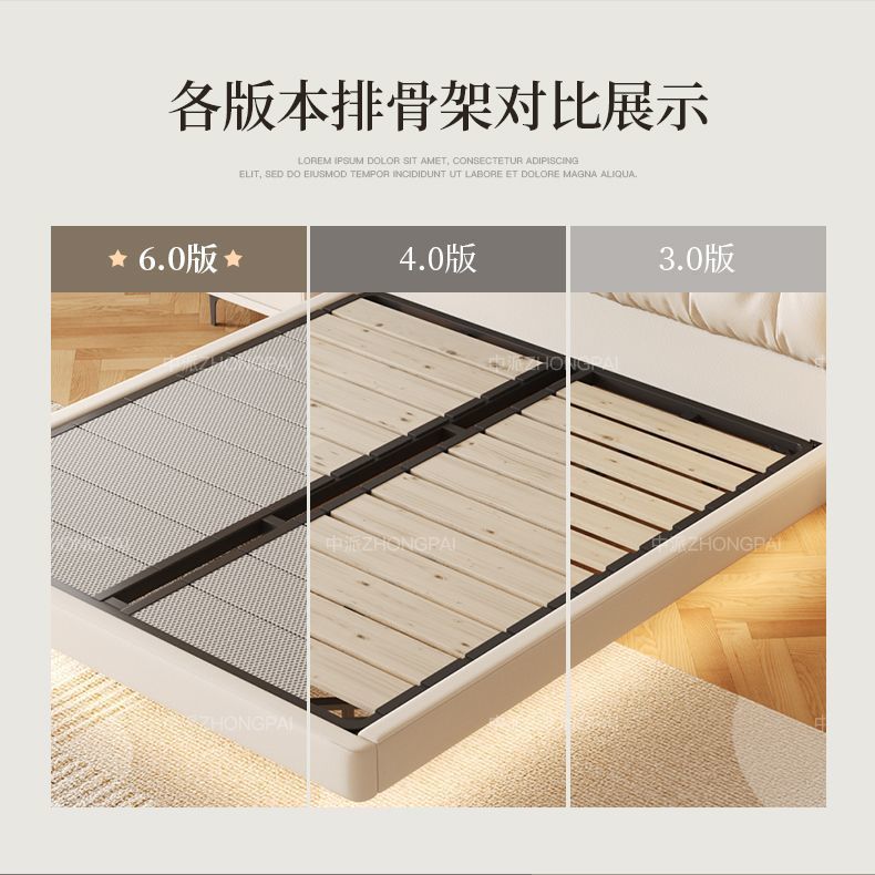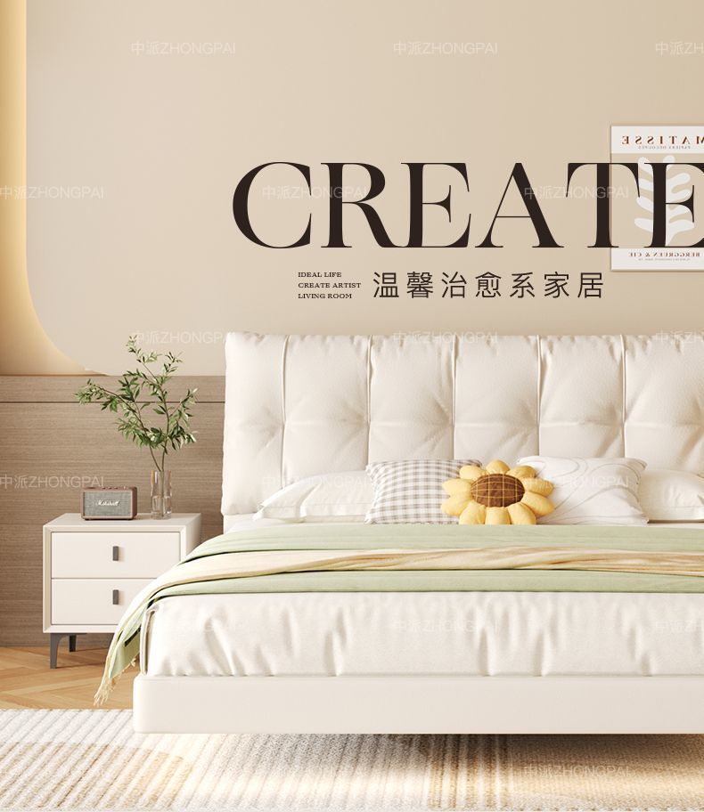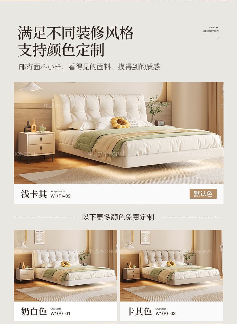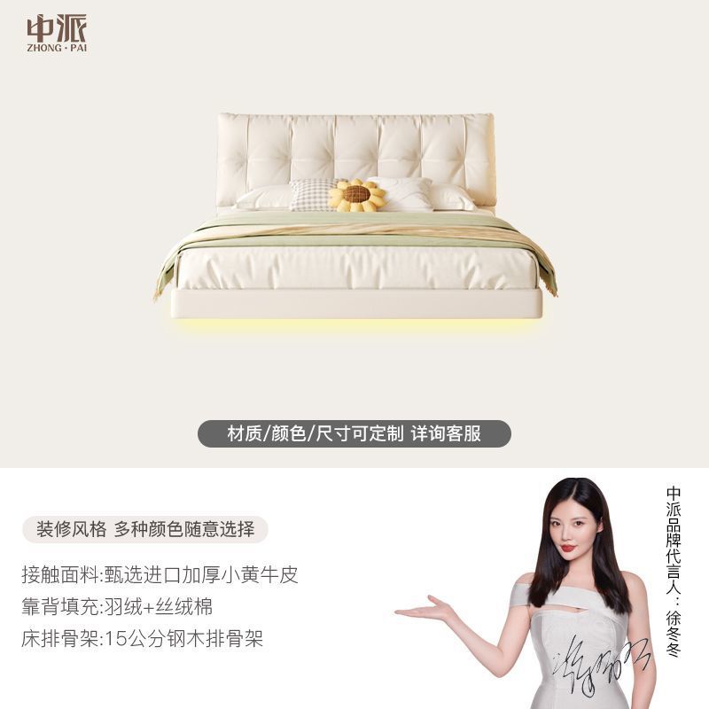 Ruoxing 서스펜션 침대 크림 스타일 라이트 럭셔리 가죽 침대 현대 간단한 홈 마스터 침실 클라우드 소프트 백 퍼프 가죽 아트 침대스토어 가기