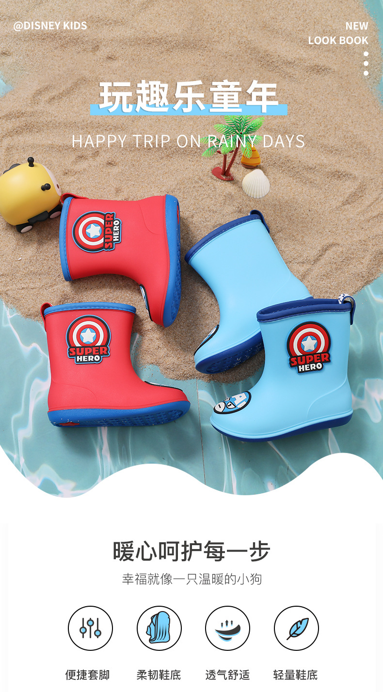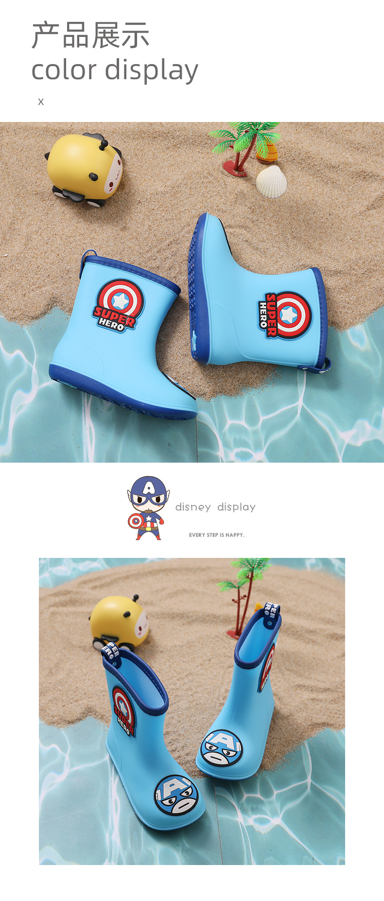 새로운 마블 스파이더 맨 캡틴 미국 어린이 장화 소년 어린이 미끄럼 방지 아기 유치원 만화 워터 부츠스토어 가기