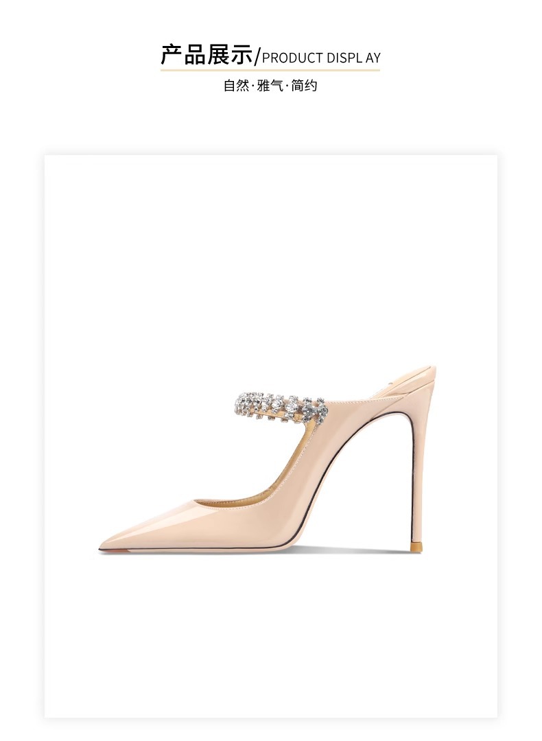 통통한 발 넓은 발 가죽 누드 특허 가죽 라인스톤 샌들 여성 뾰족한 뒷면 빈 크리스탈 전문 OL 하이힐 플러스 사이즈 44