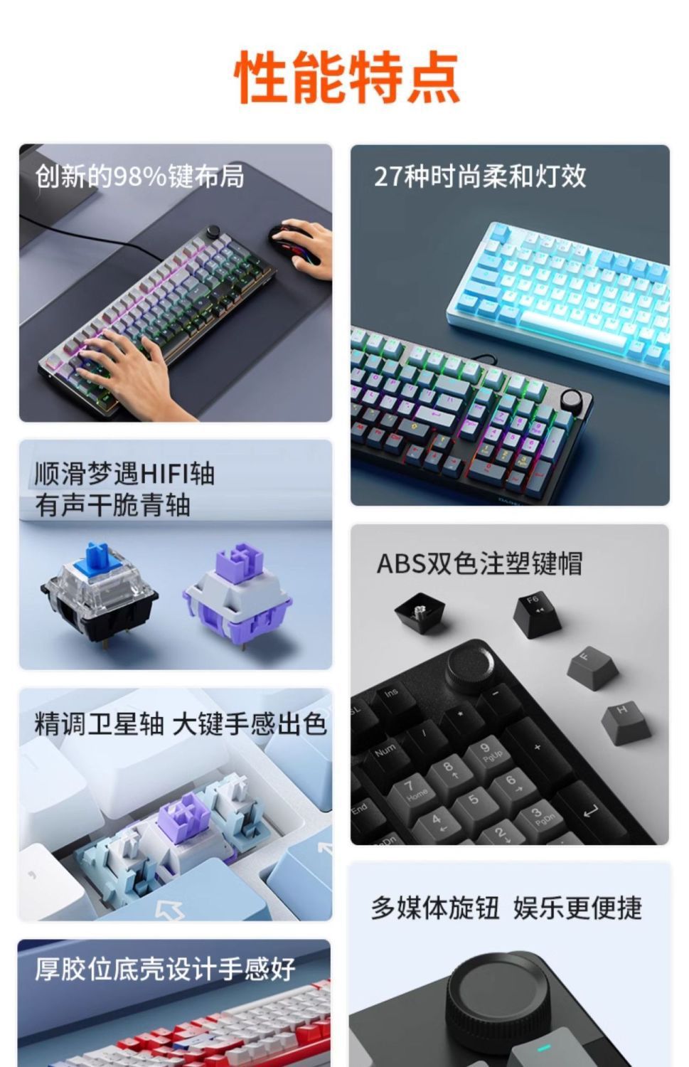• 인기 모델: 검정색과 회색 혼합 조명 버전 - 녹색 축(깨끗하고 시끄러움)