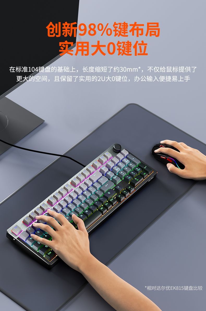 Daryou EK815PRO 기계식 키보드 98 전자 경쟁 게임 RGB 손잡이 유선 키보드 2 색 키 캡
