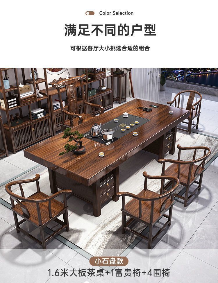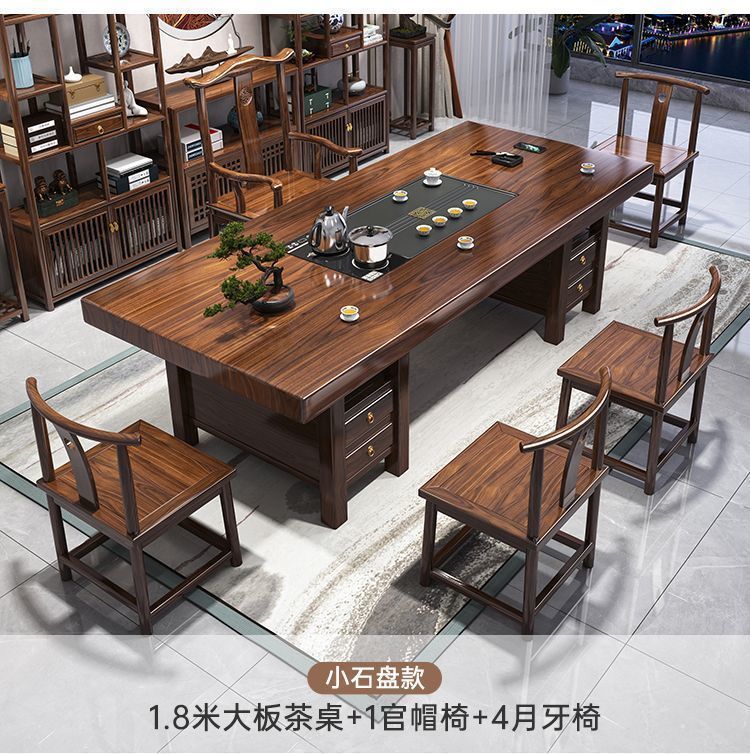 1 개의 테이블과 5 개의 의자가있는 하이 엔드 솔리드 우드 대형 보드 티 테이블은 이제 완전한 차 테이블 공장 공급 세트와 함께 공공 가정용 티 테이블에서 사용할 수 있습니다.스토어 가기