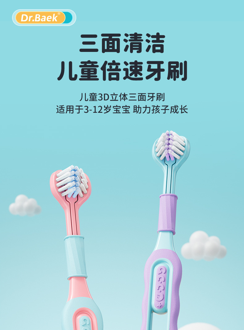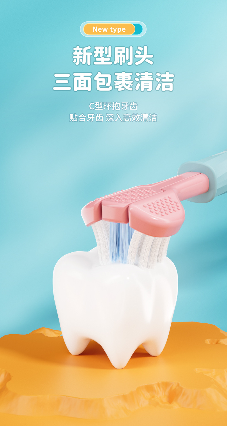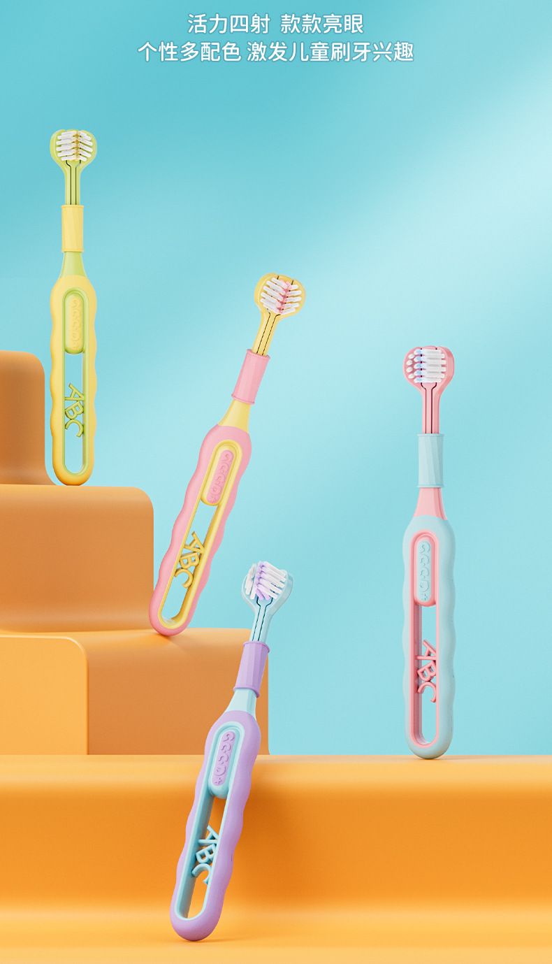 C 엔드 폭발 3-12 세 어린이 3 면 칫솔 3 면 부드러운 머리 완전히 감싼 잇몸 보호 어린이 3 머리 칫솔스토어 가기