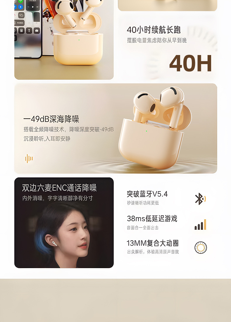 국경 간 세미 인 이어 R7 진정한 무선 블루투스 헤드셋 ENC 소음 감소 통화 스포츠 고품질 스마트 무선 헤드셋