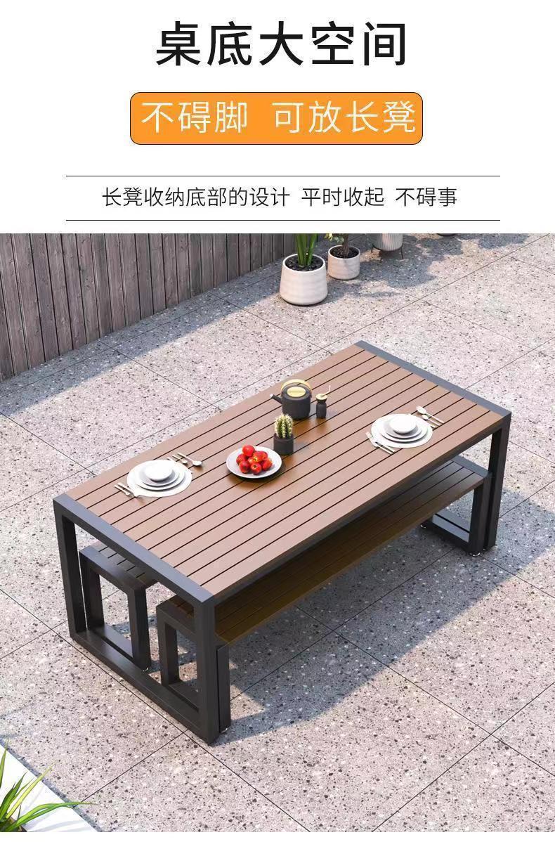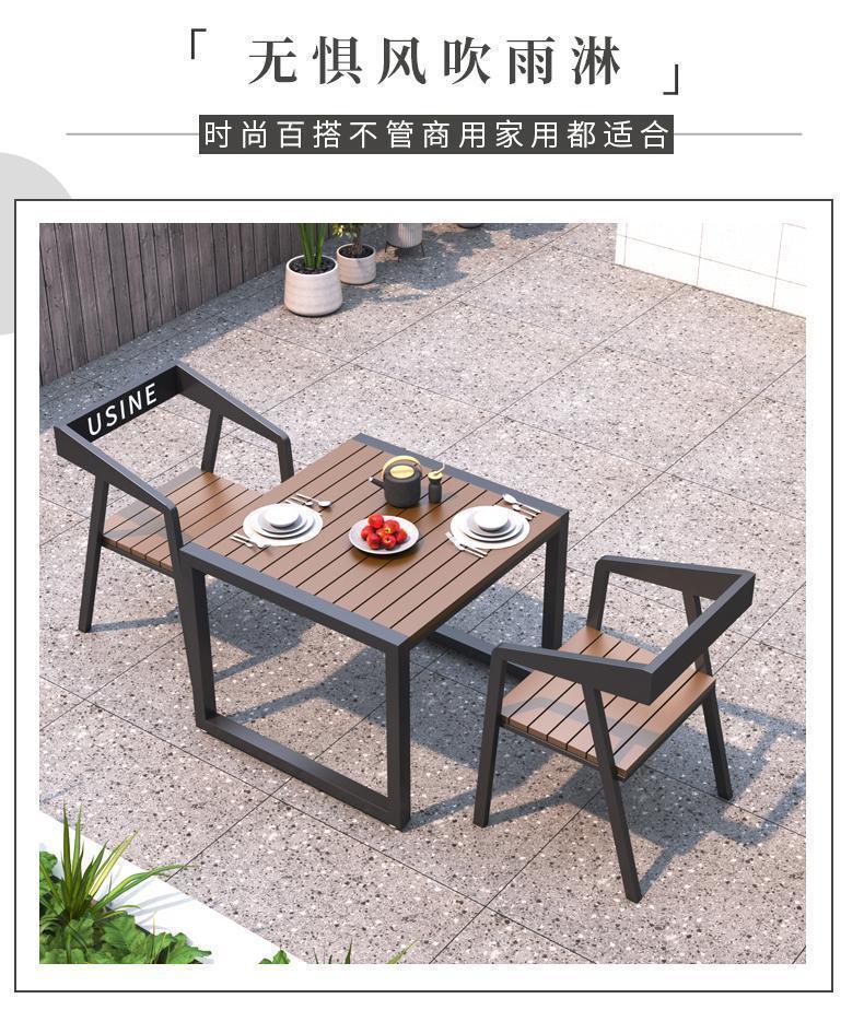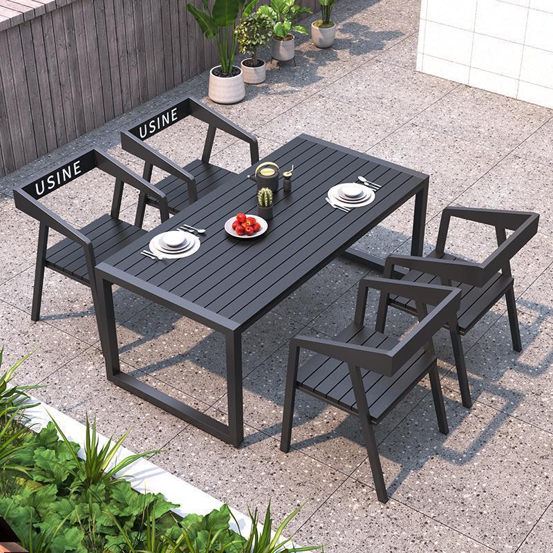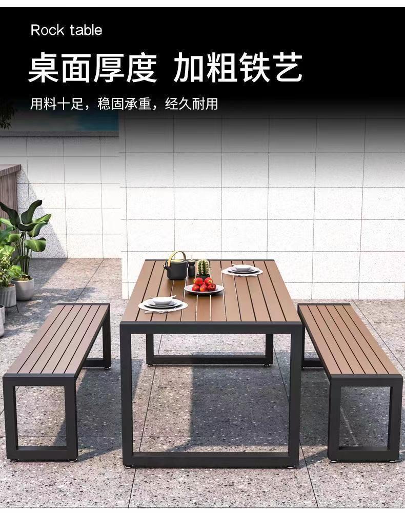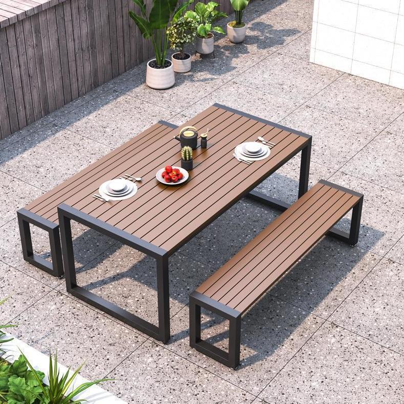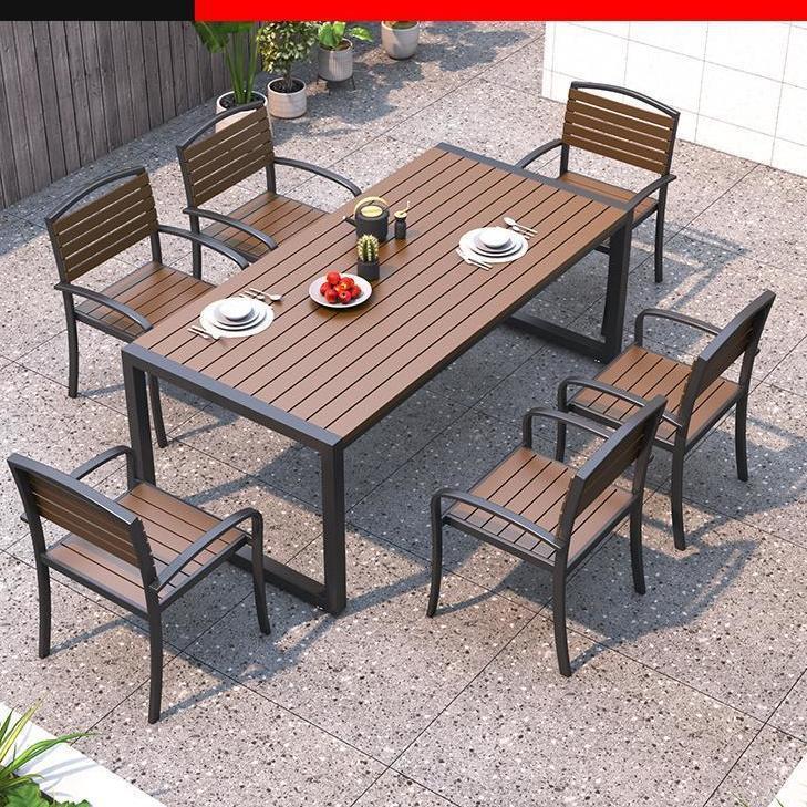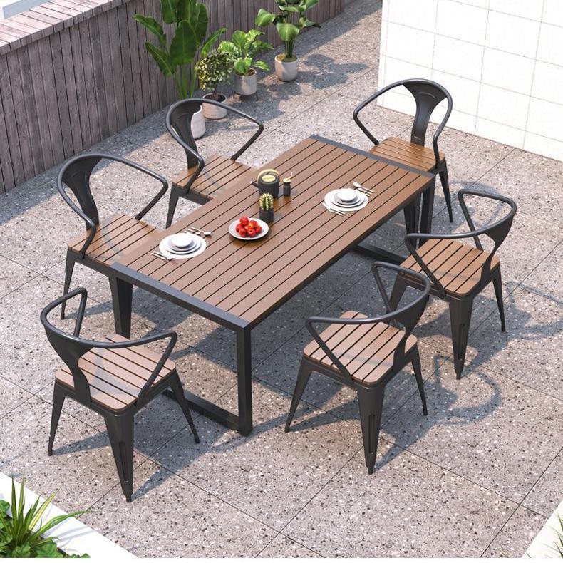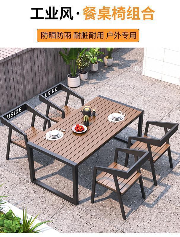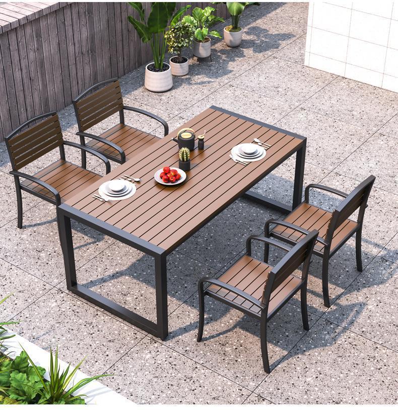 야외 안뜰 테이블과 의자 야외 방수 선 스크린 다이닝 테이블 파크 레저 발코니 철 플라스틱 나무 바베큐 테이블과 의자 조합