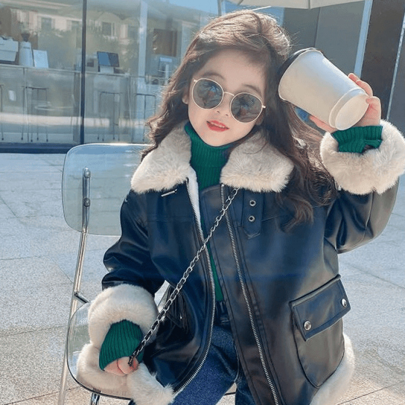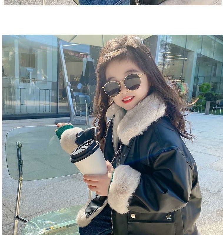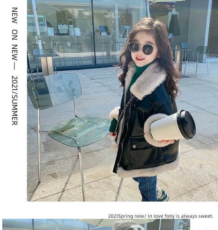 소녀의 큰 소년의 가죽 겨울 2024 새로운 패션 유행 가죽 소녀의 어린이 두꺼운 기모 가죽 자켓 어린이 의류스토어 가기