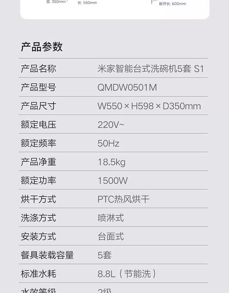 Xiaomi Mijia 데스크탑 식기 세척기 5 세트 S1 가정용 지능형 건조 모성 및 유아 등급