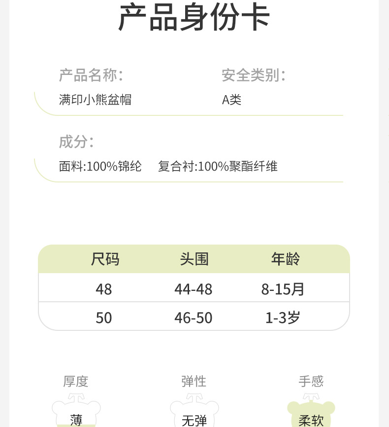 • 사이즈 50: 모자 둘레(46-50cm) 1~3세에게 권장