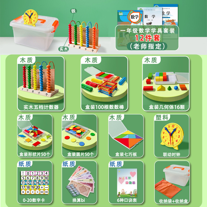 1 학년 수학 교육 지원 첫 번째 볼륨 학습 도구 상자 카운터 초등학교 작은 스틱 기하학 그래픽 학습 용품 세트스토어 가기