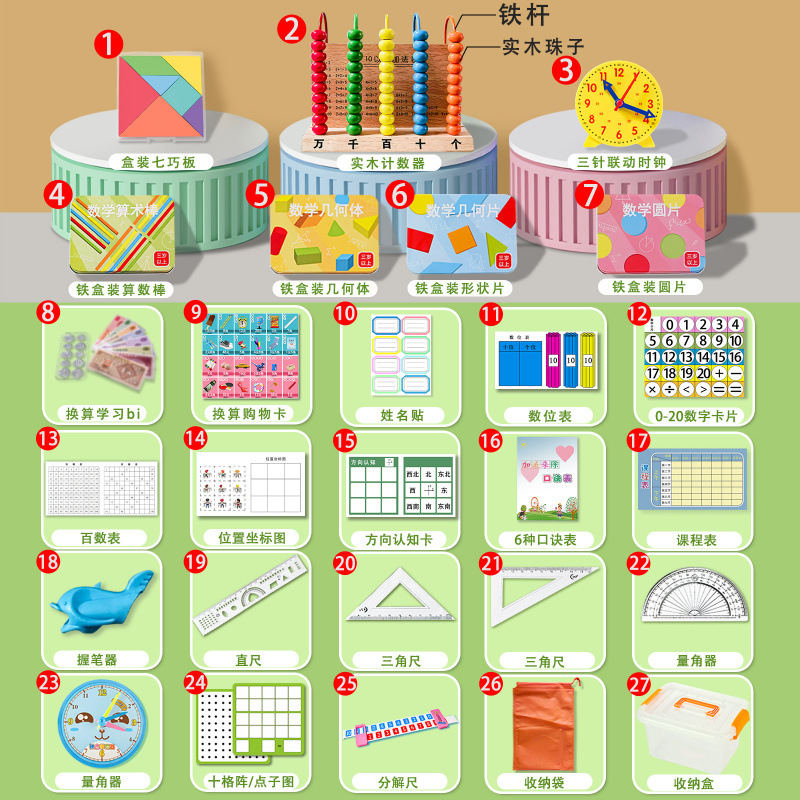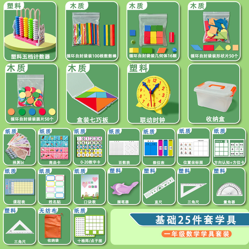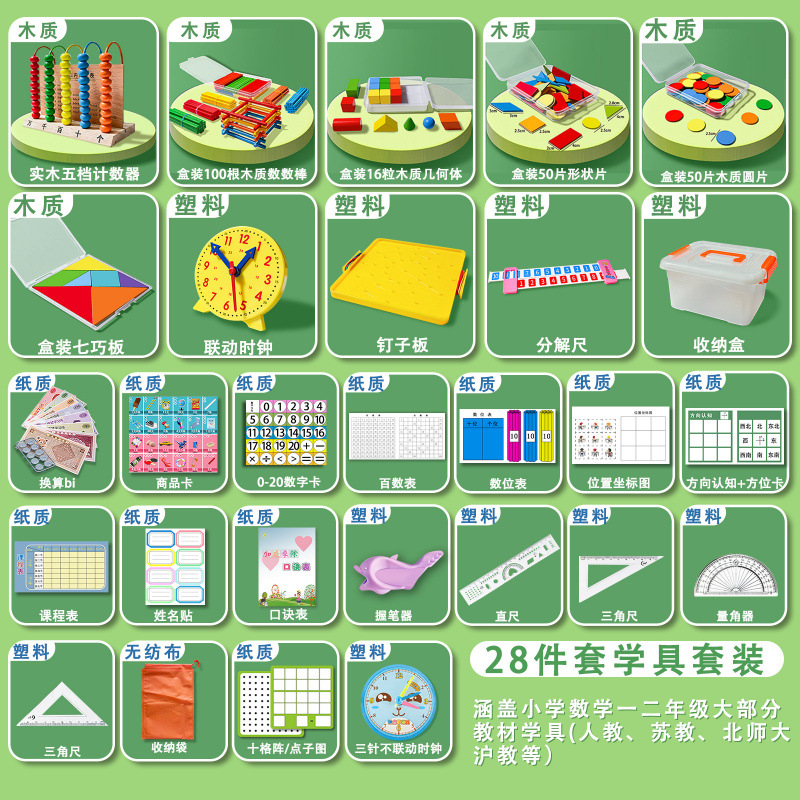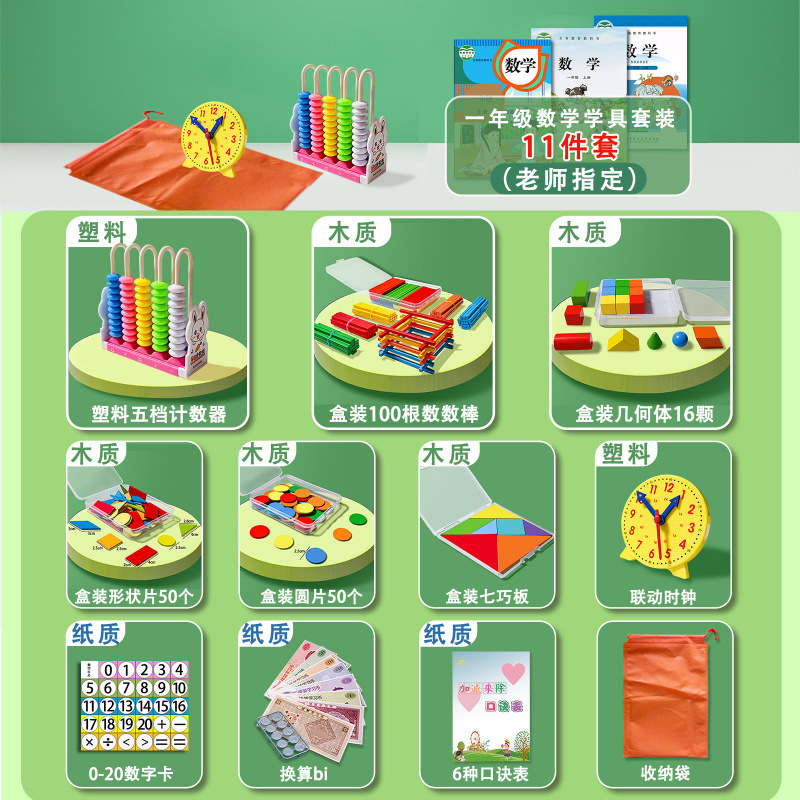 1 학년 수학 교육 지원 첫 번째 볼륨 학습 도구 상자 카운터 초등학교 작은 스틱 기하학 그래픽 학습 용품 세트