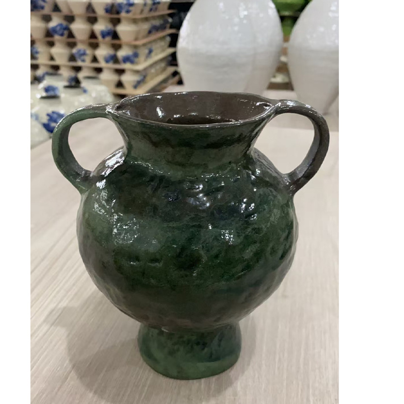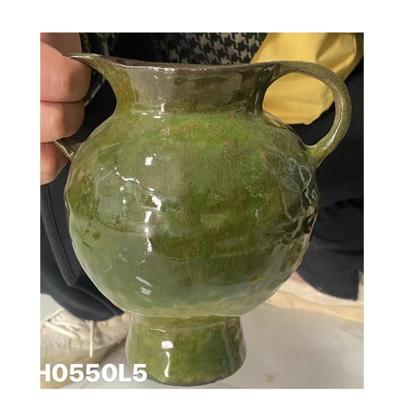 수제 손으로 그린 꽃병 쌍안경 녹색 식물 꽃병 홈 거실 다방 입구 장식 Jingdezhen 세라믹 꽃
