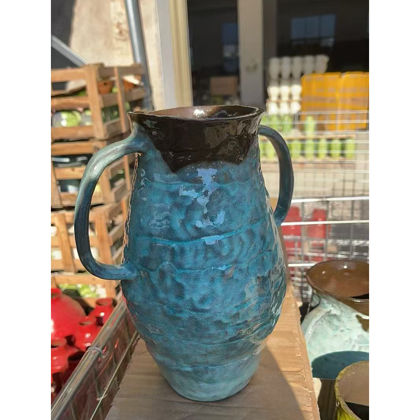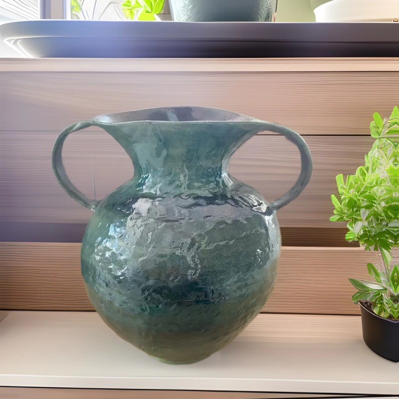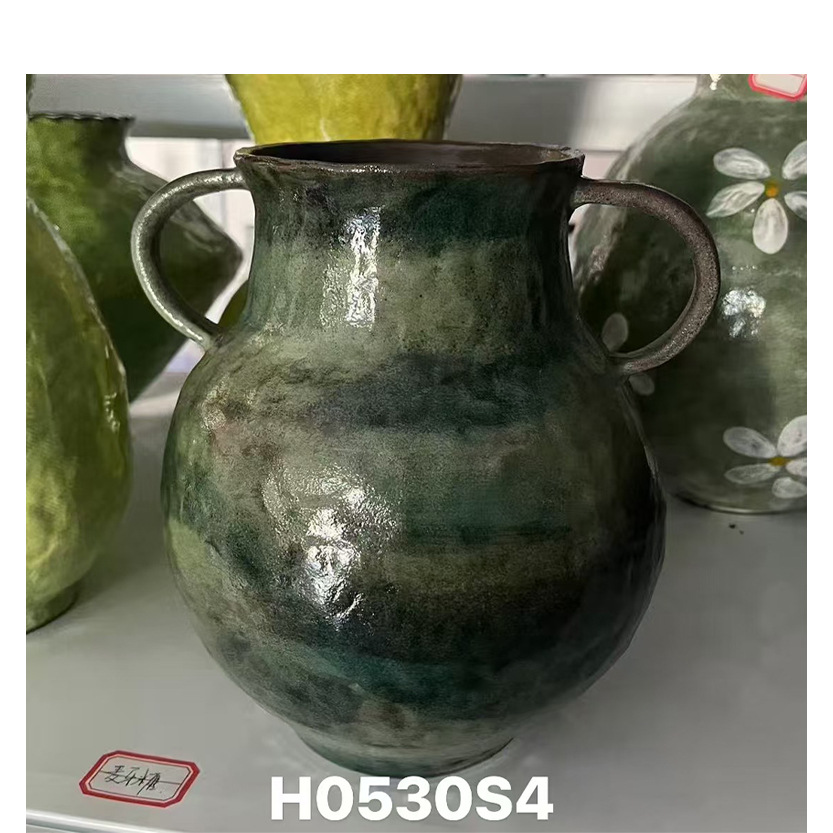 수제 손으로 그린 꽃병 쌍안경 녹색 식물 꽃병 홈 거실 다방 입구 장식 Jingdezhen 세라믹 꽃스토어 가기