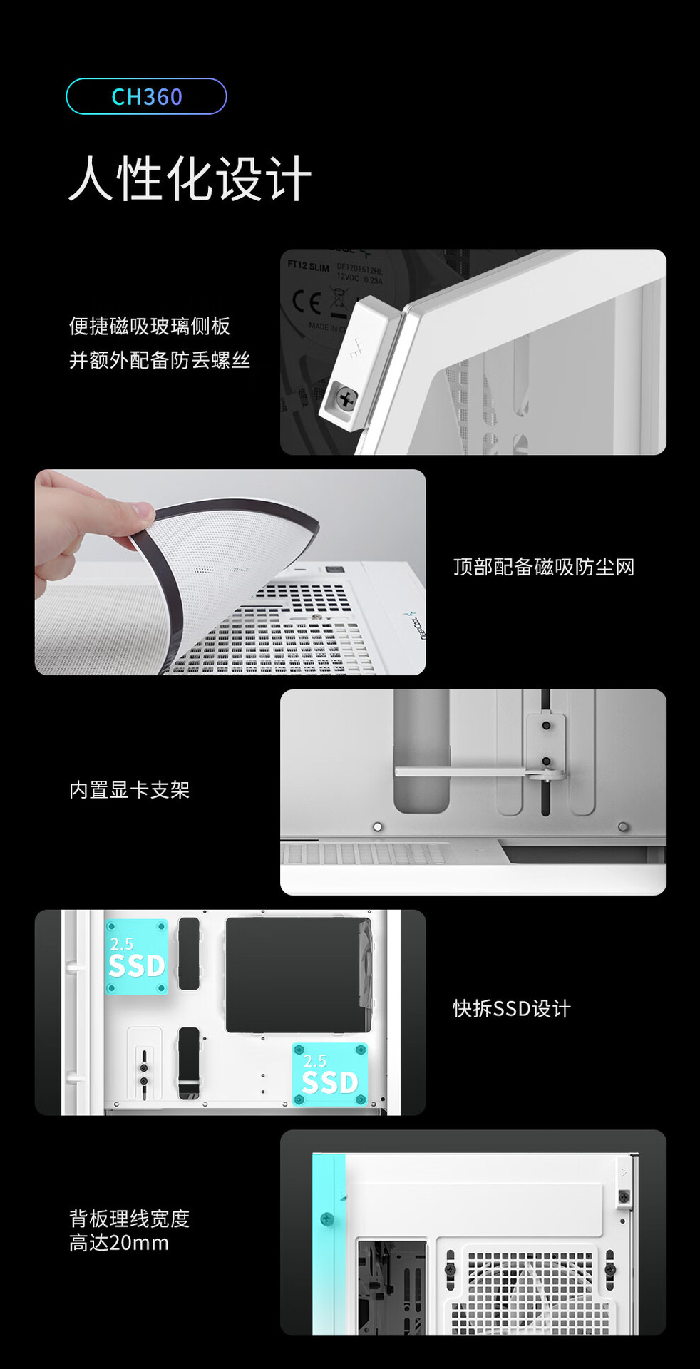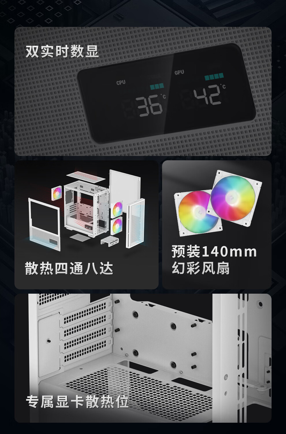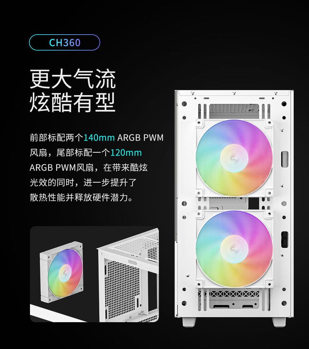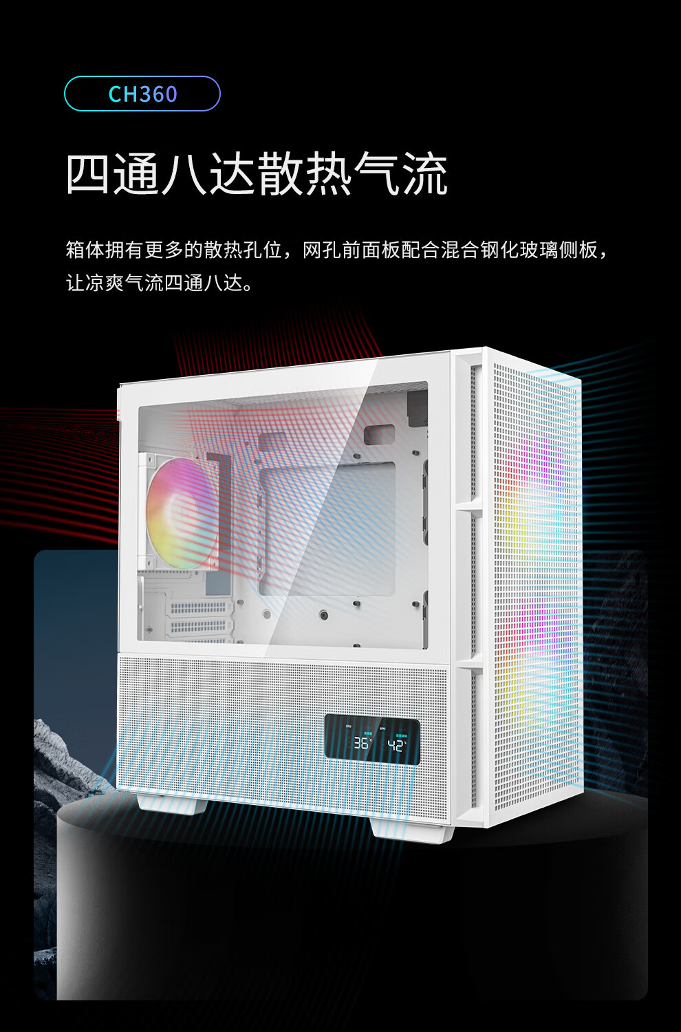 Kyushu Fengshen CH360 디지털 디스플레이 버전 MATX 컴퓨터 케이스 흰색 듀얼 디지털 디스플레이 LED ARGB 팬 게임스토어 가기