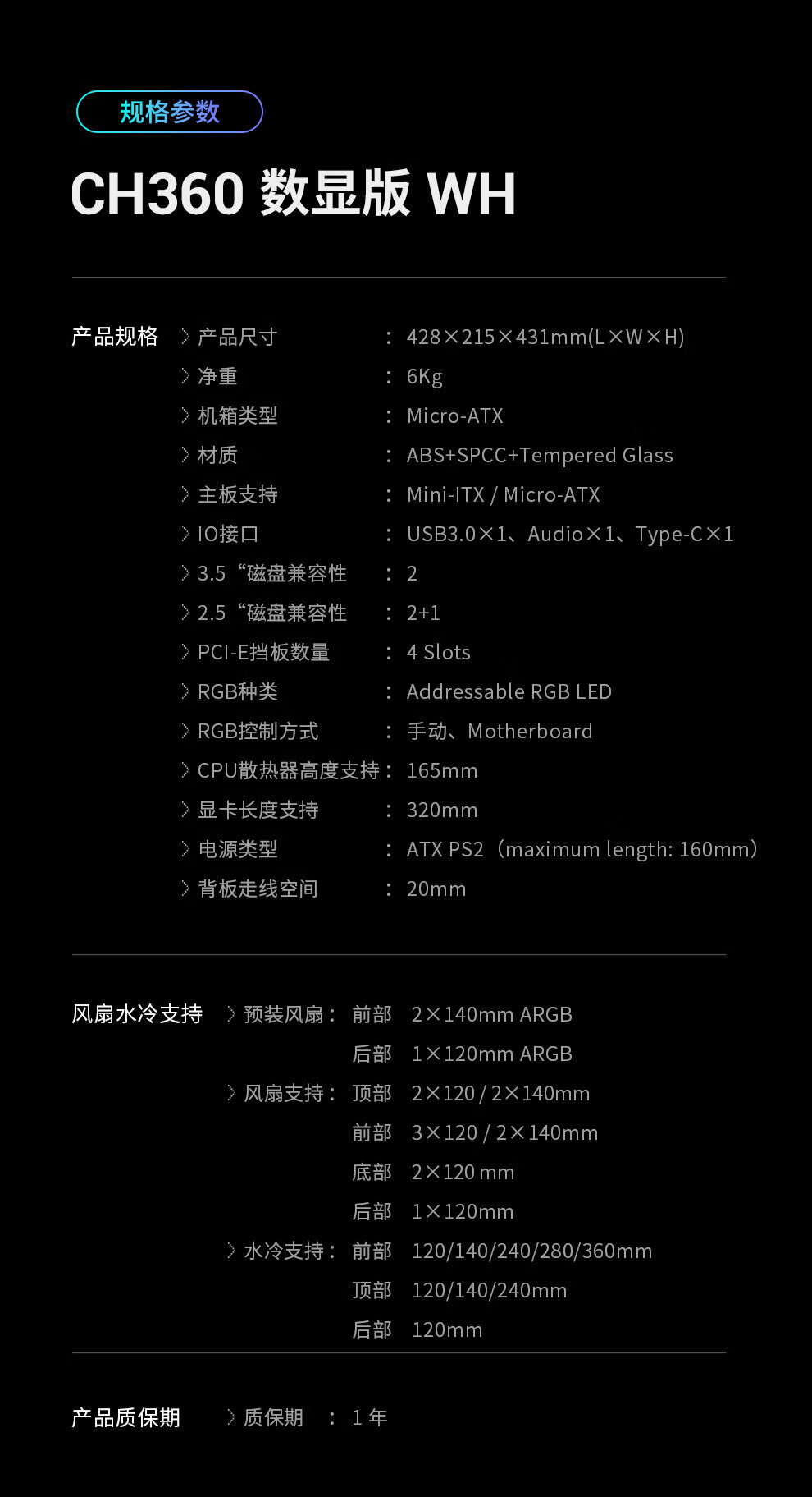 • CH360 디지털 디스플레이 블랙(MATX/온도 표시)