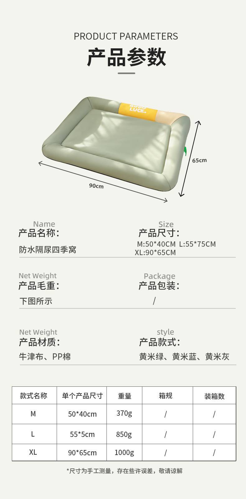 • 삼색 방수 사계절 매트 [옐로우, 베이지, 그린]