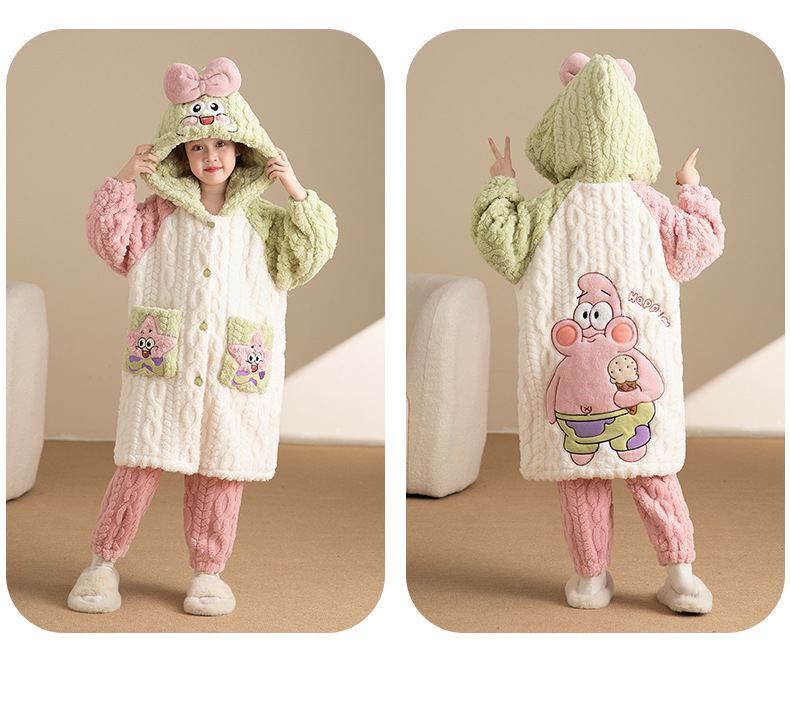 2024 년 어린이 가을 겨울 기모 두꺼운 잠옷 플란넬 큰 여자 따뜻한 산호 양털 세트 홈 옷스토어 가기