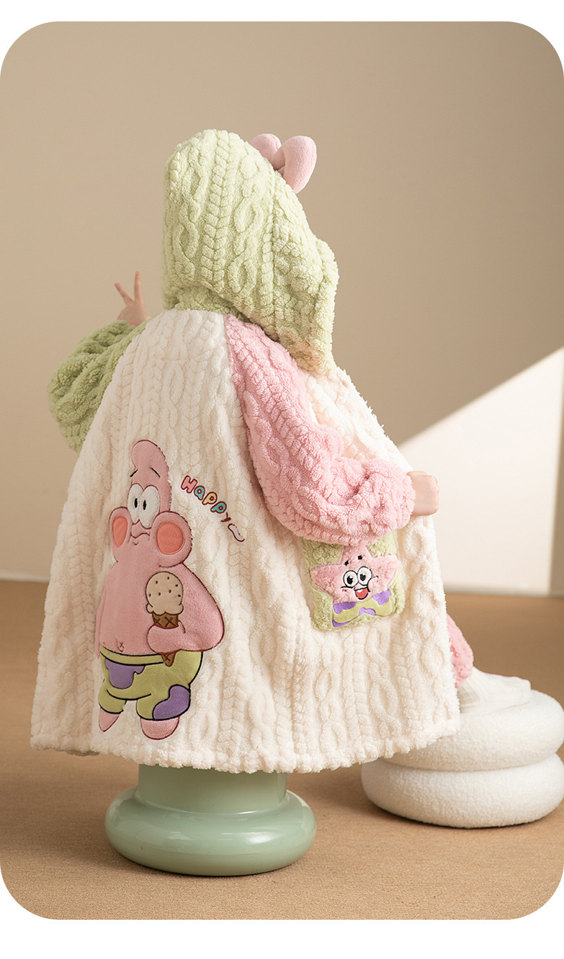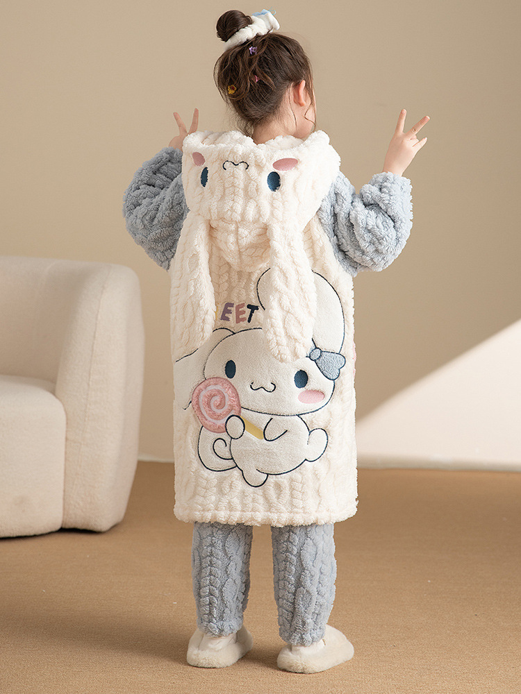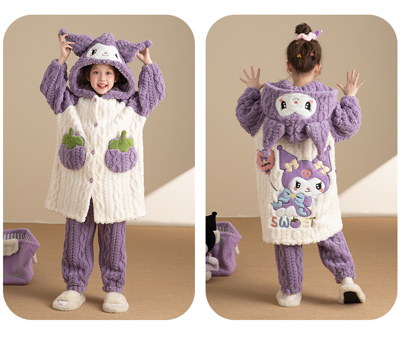 2024 년 어린이 가을 겨울 기모 두꺼운 잠옷 플란넬 큰 여자 따뜻한 산호 양털 세트 홈 옷