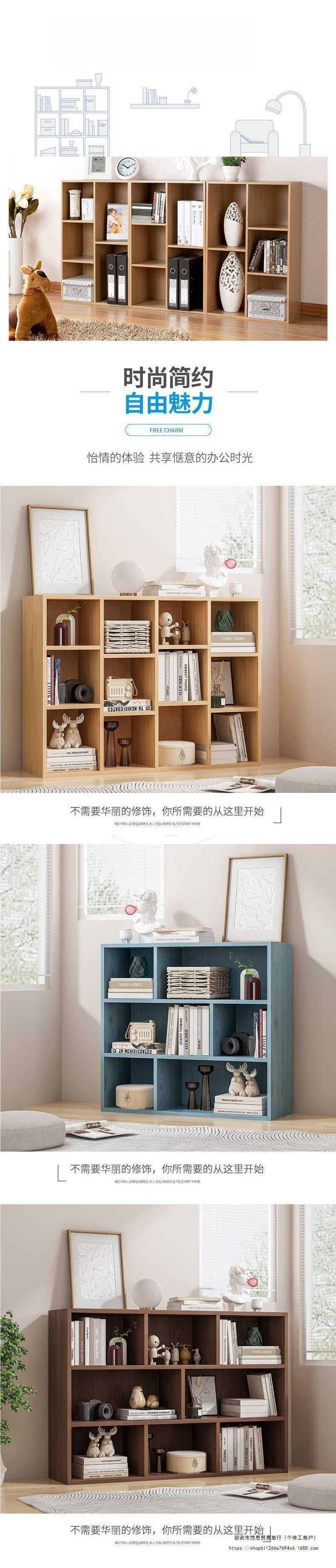 책장 책장 실용적인 8 칸 나무 사물함 간단한 현대 어린이 책장 무료 조합 보관 신제품스토어 가기