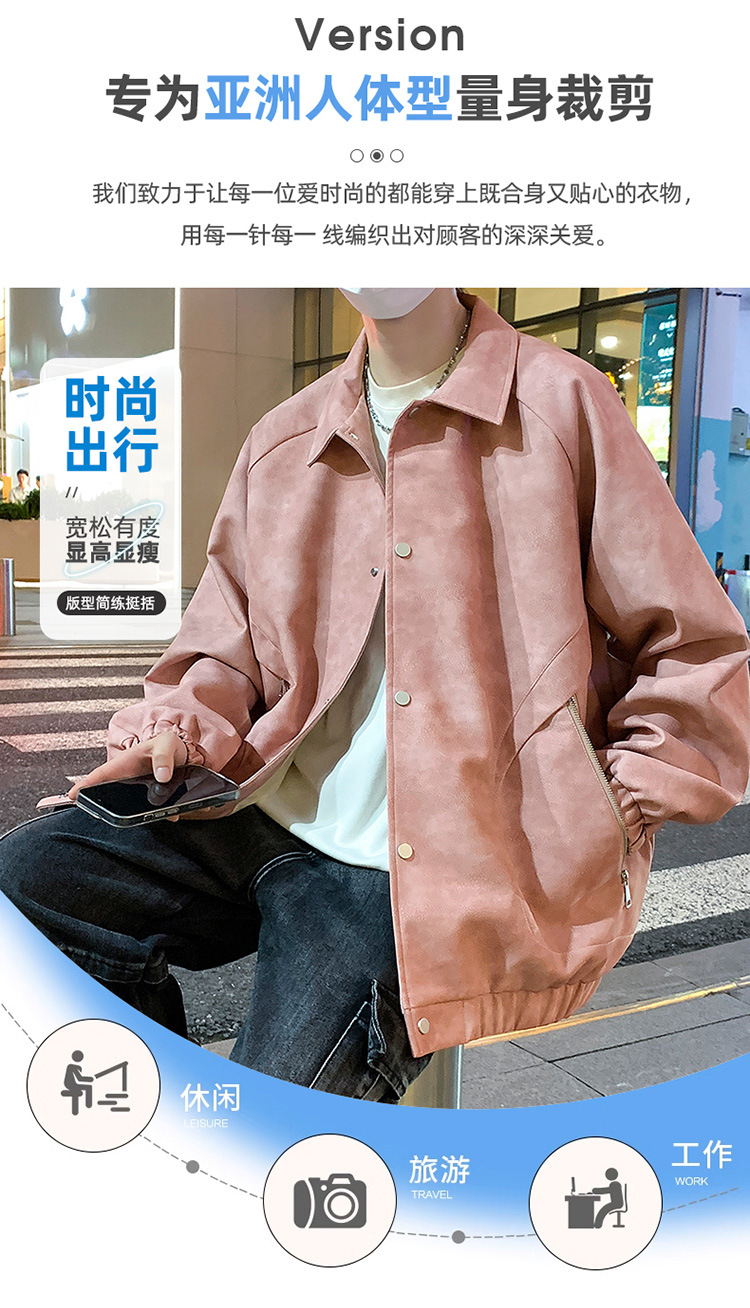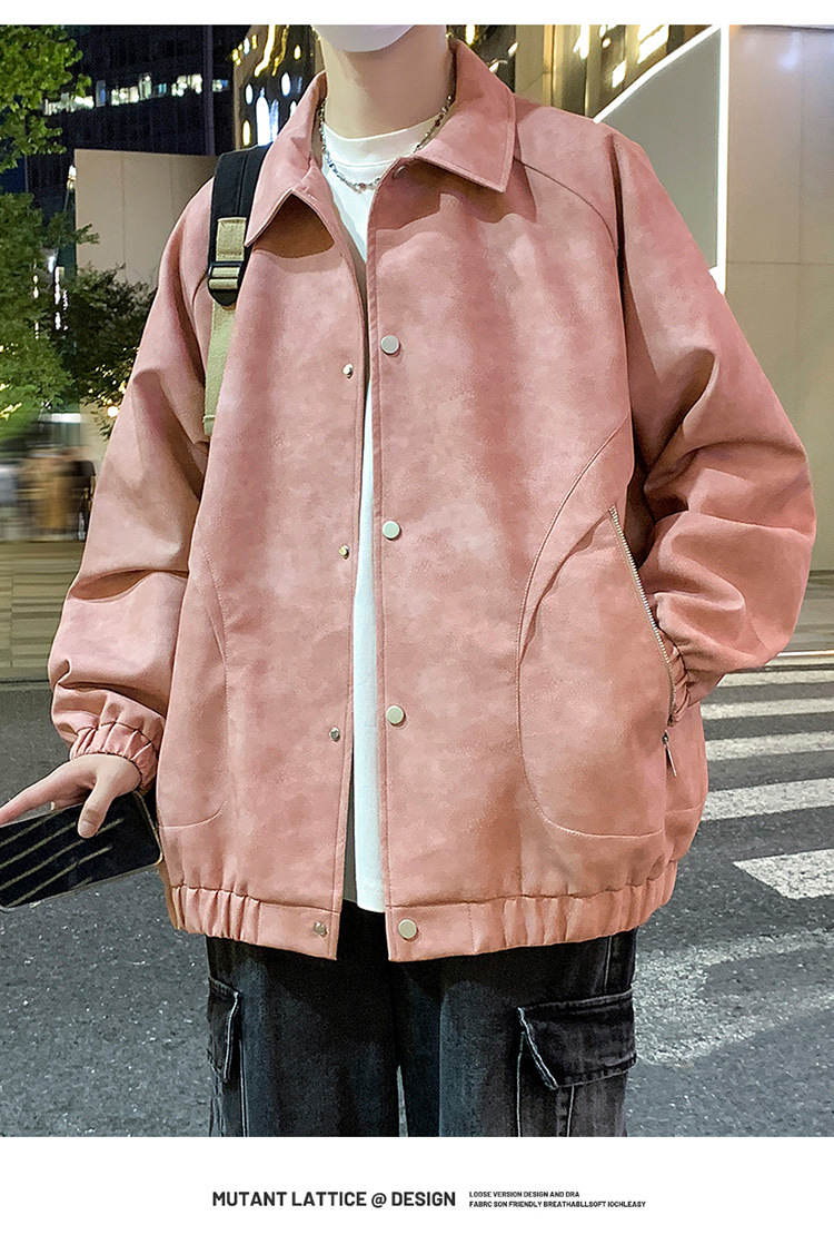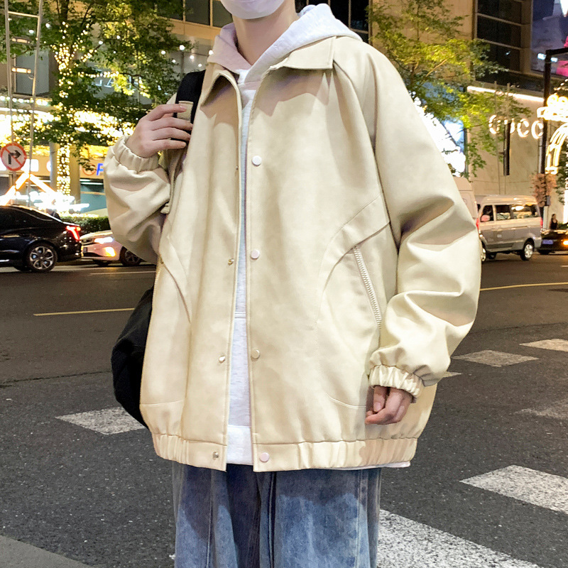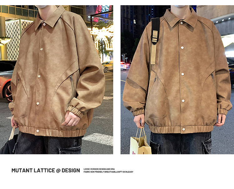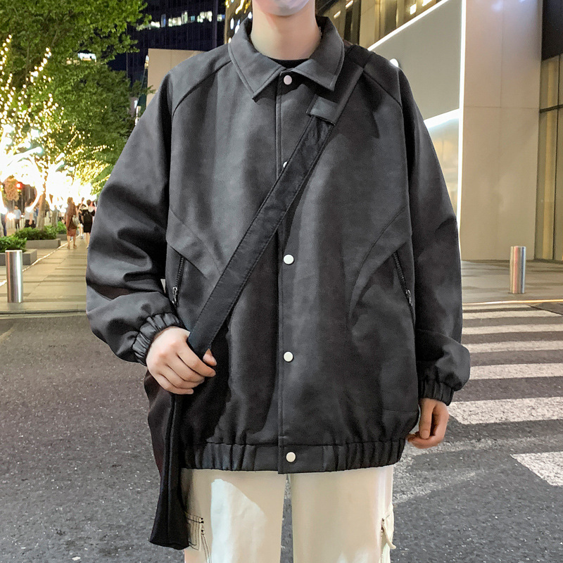 2024 가을과 겨울 새로운 홍콩 스타일 PU 가죽 자켓 남성용 느슨한 플러스 사이즈 뚱뚱한 캐주얼 커플 코트 남성스토어 가기
