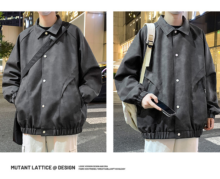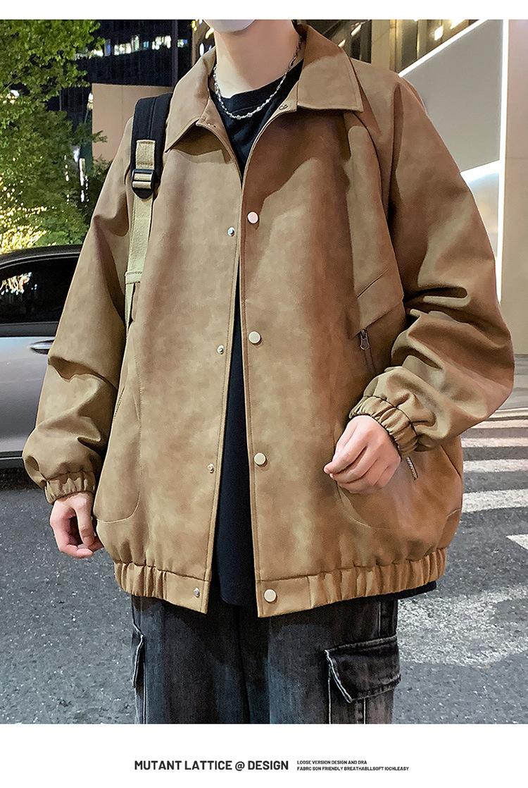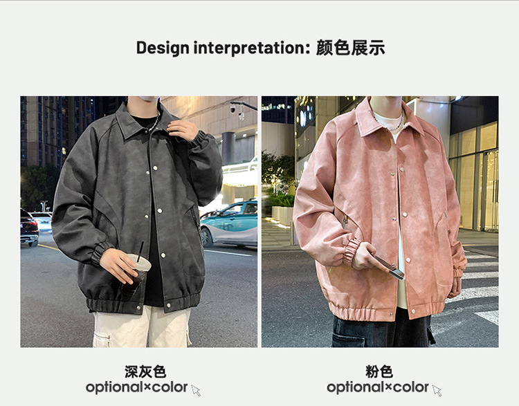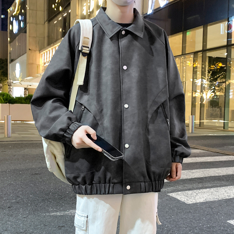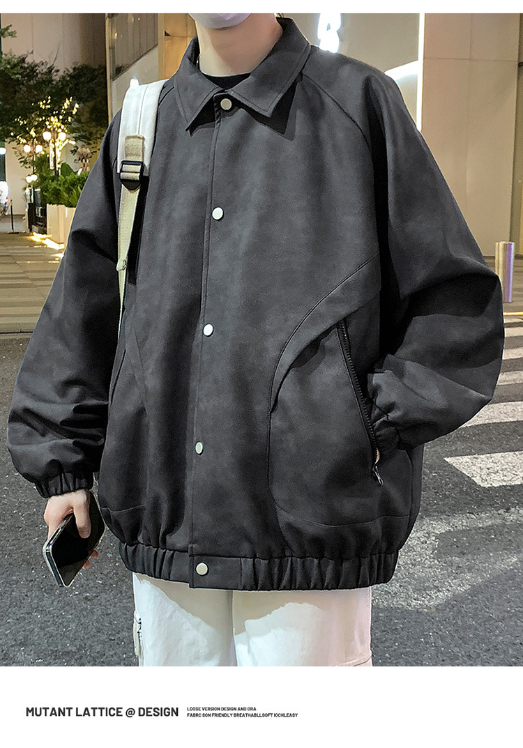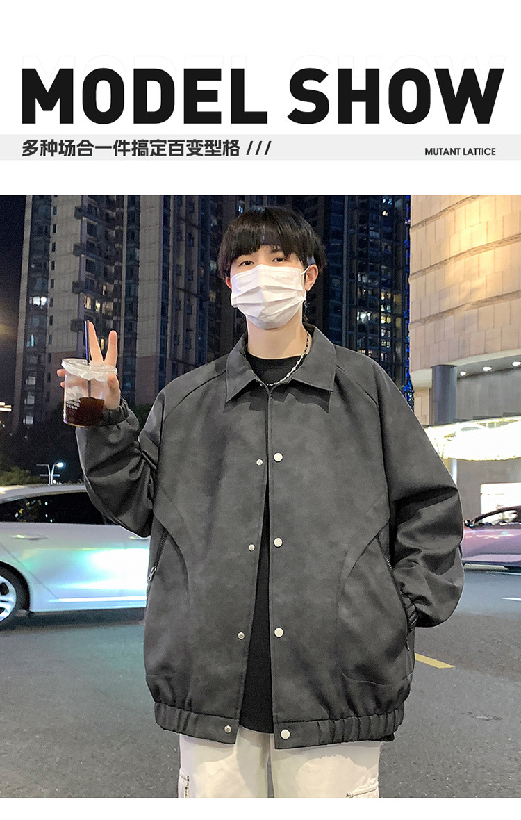 2024 가을과 겨울 새로운 홍콩 스타일 PU 가죽 자켓 남성용 느슨한 플러스 사이즈 뚱뚱한 캐주얼 커플 코트 남성스토어 가기