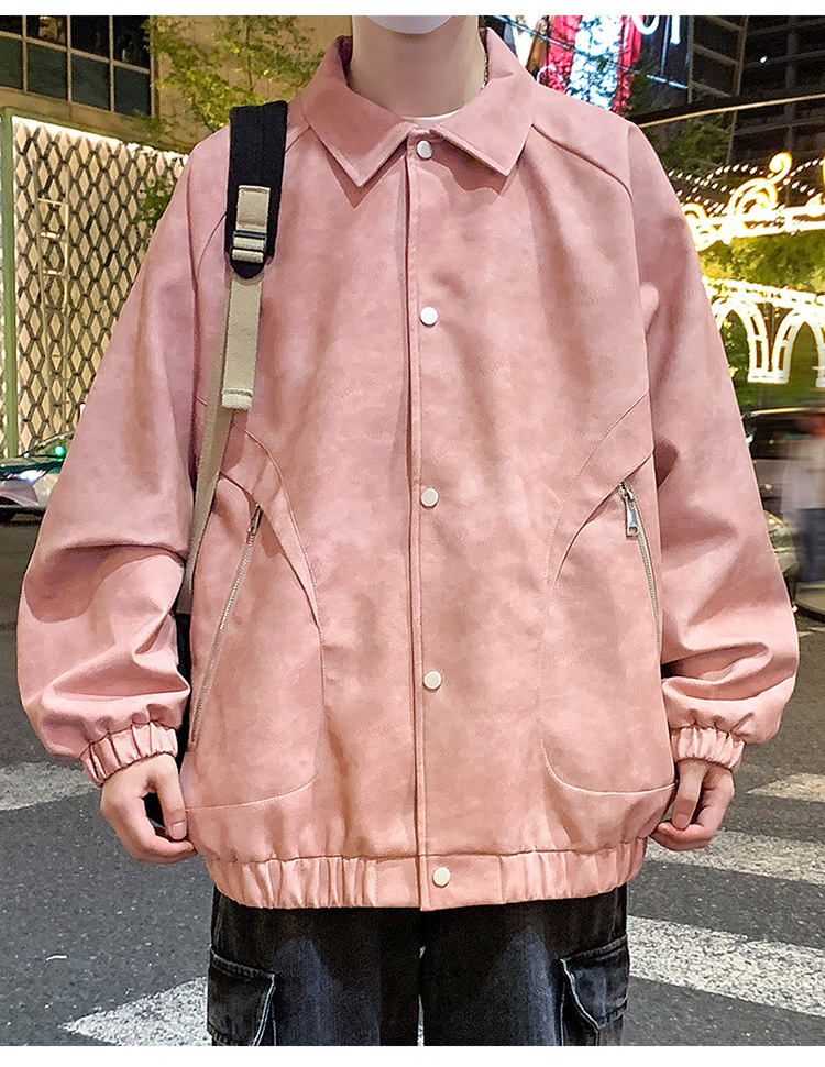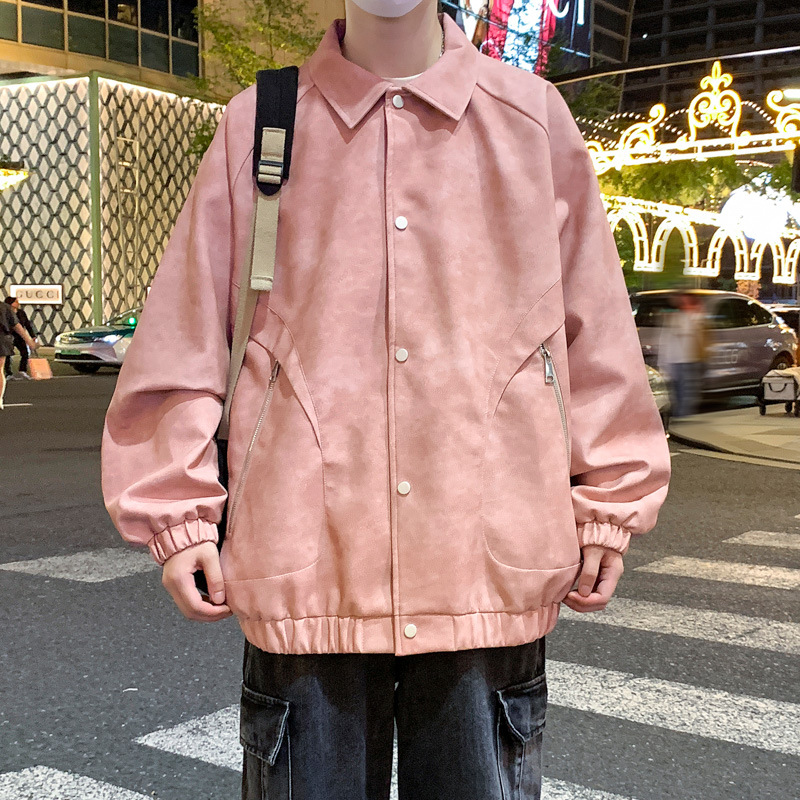 2024 가을과 겨울 새로운 홍콩 스타일 PU 가죽 자켓 남성용 느슨한 플러스 사이즈 뚱뚱한 캐주얼 커플 코트 남성