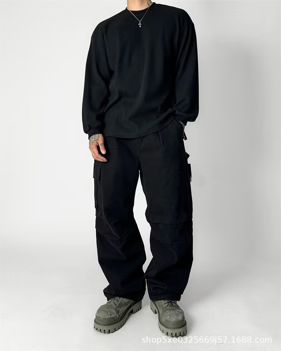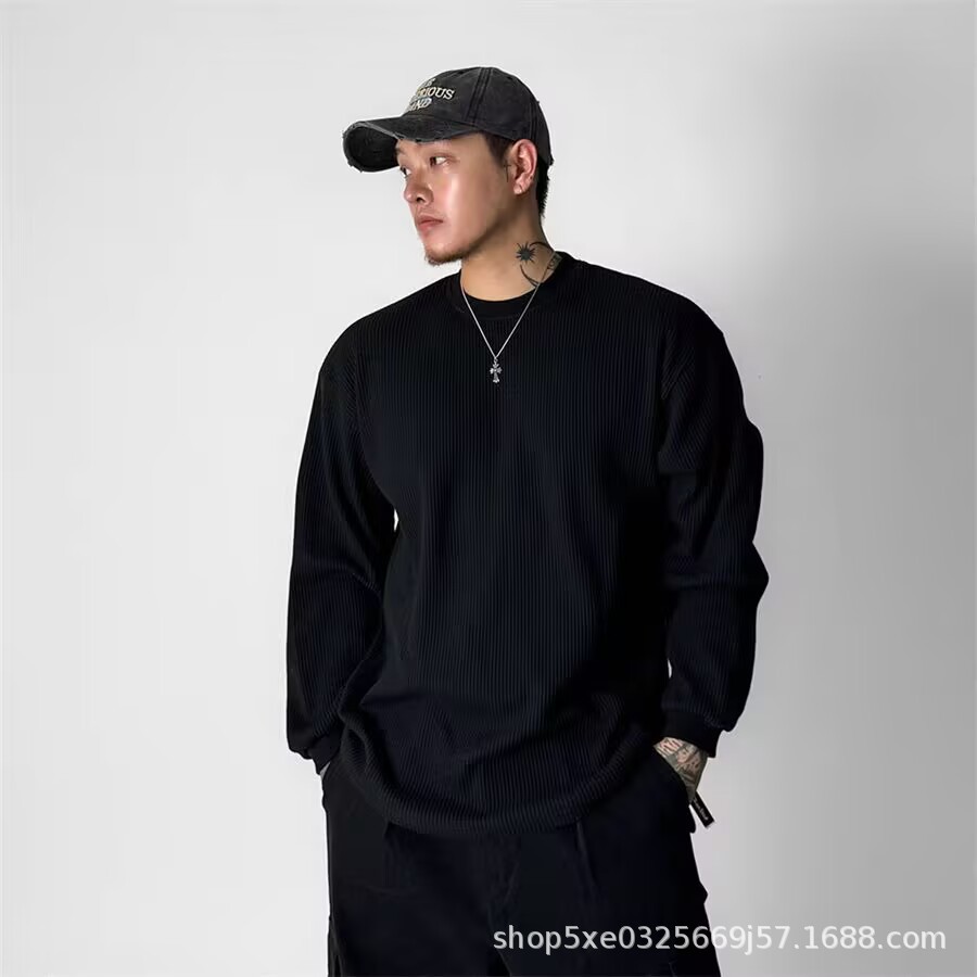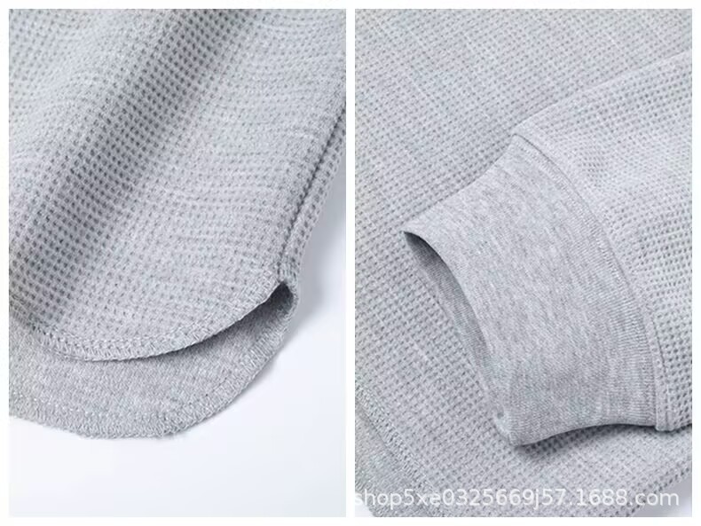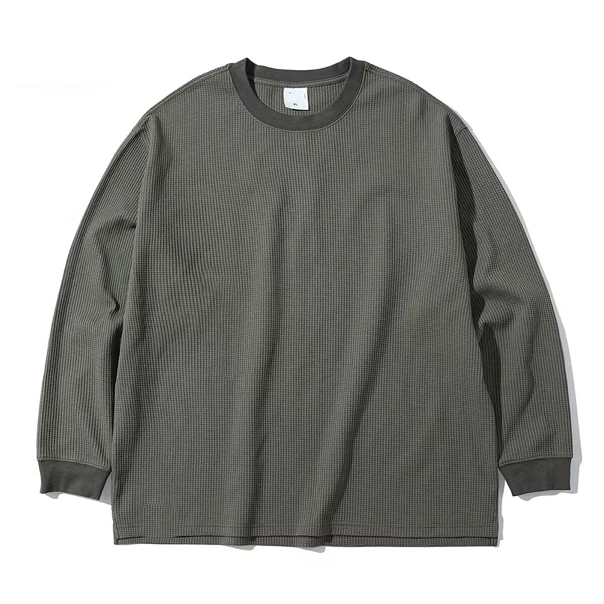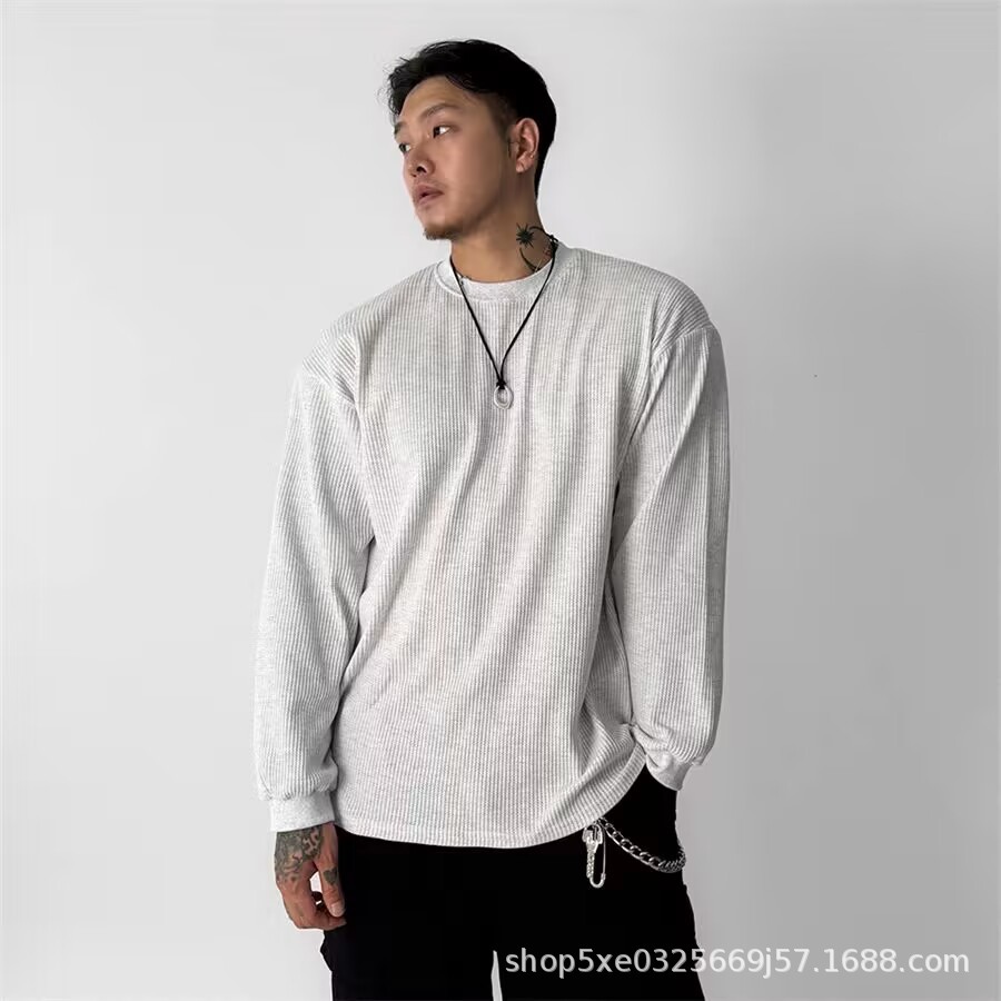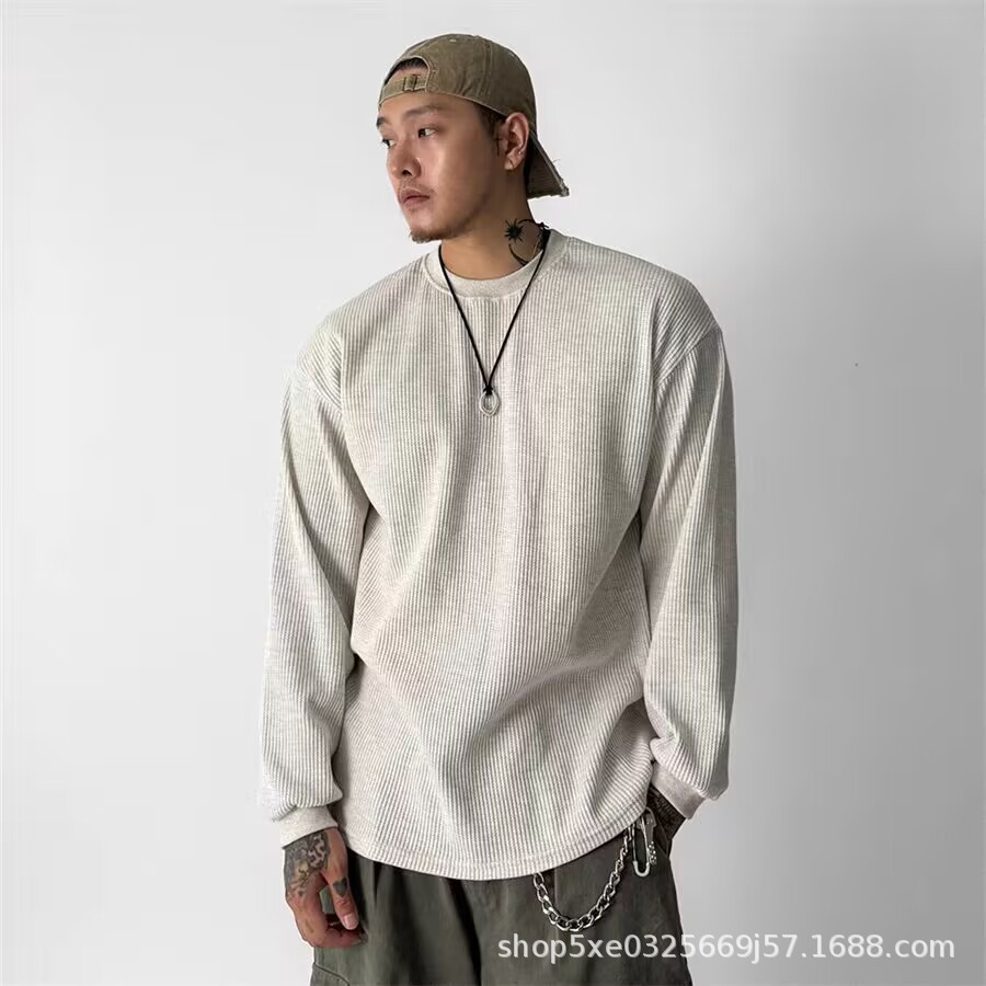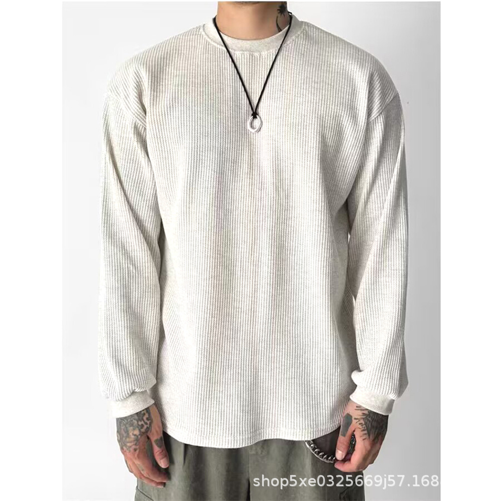 남성용 작은 목을 가진 미국식 와플 스웨터 유럽산 슬림 핏 긴소매 툴링 티셔츠 텍스처 스플릿베이스 셔츠 트렌디스토어 가기