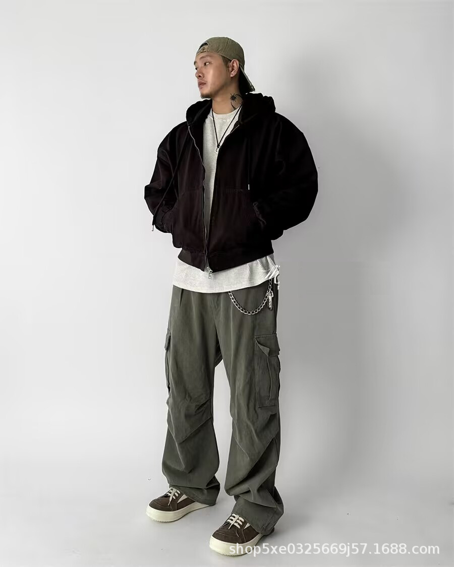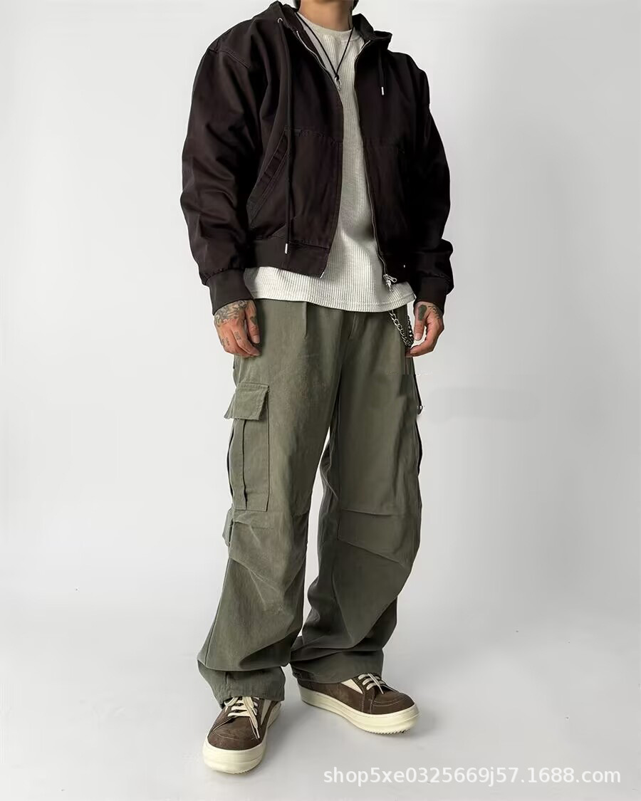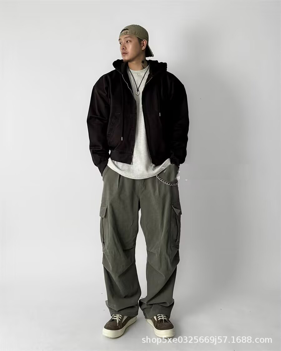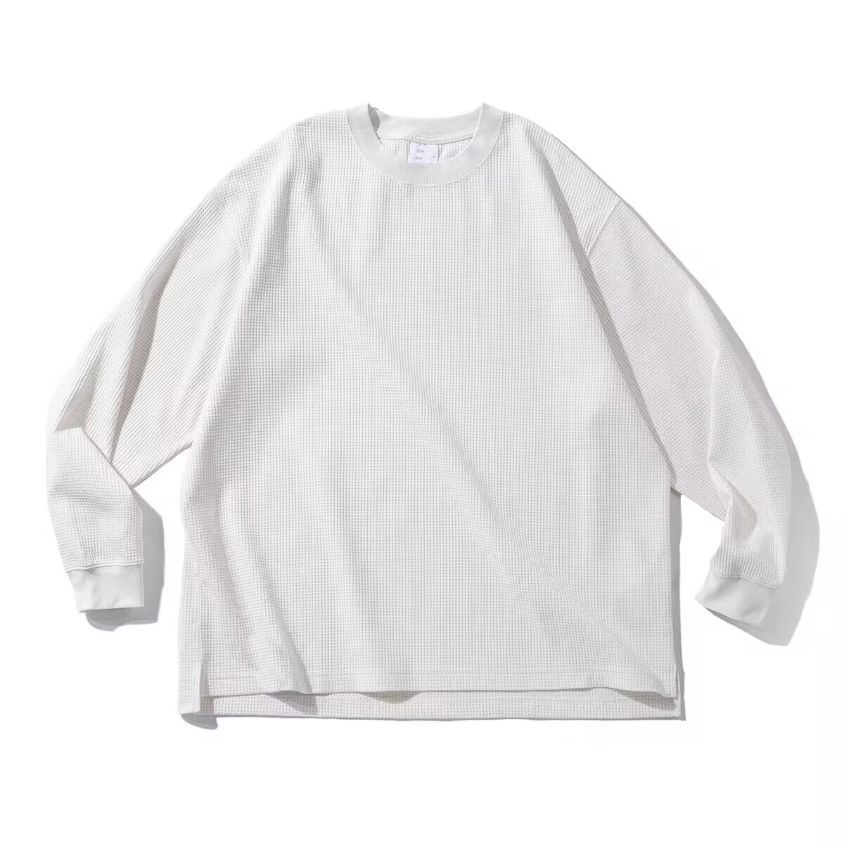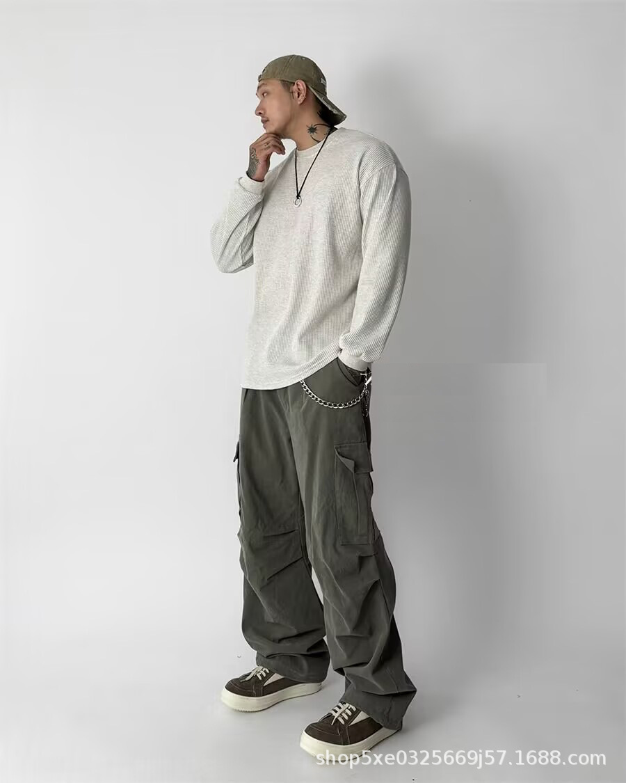 남성용 작은 목을 가진 미국식 와플 스웨터 유럽산 슬림 핏 긴소매 툴링 티셔츠 텍스처 스플릿베이스 셔츠 트렌디스토어 가기
