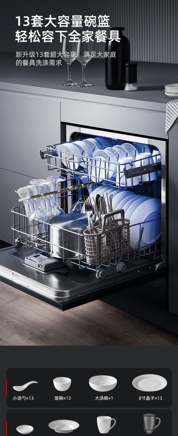 대용량 완전 자동 가정용 식기 세척기 테이블 임베디드 이중 목적 고온 살균 건조 및 소독 통합 기계 13 세트