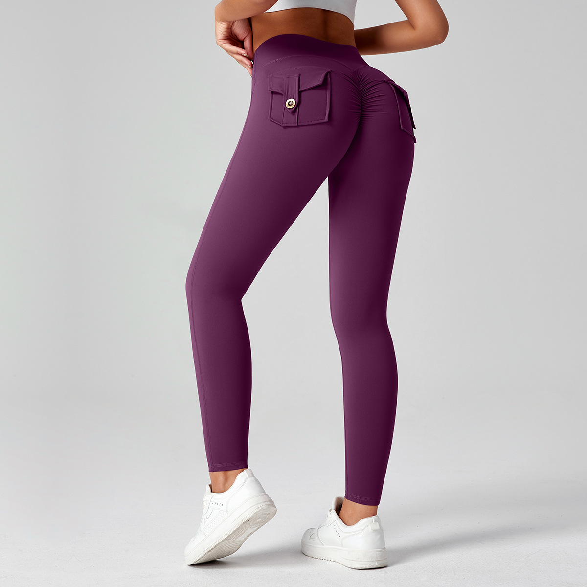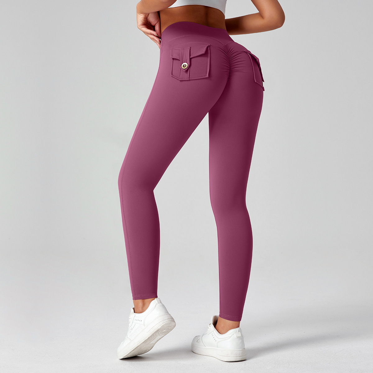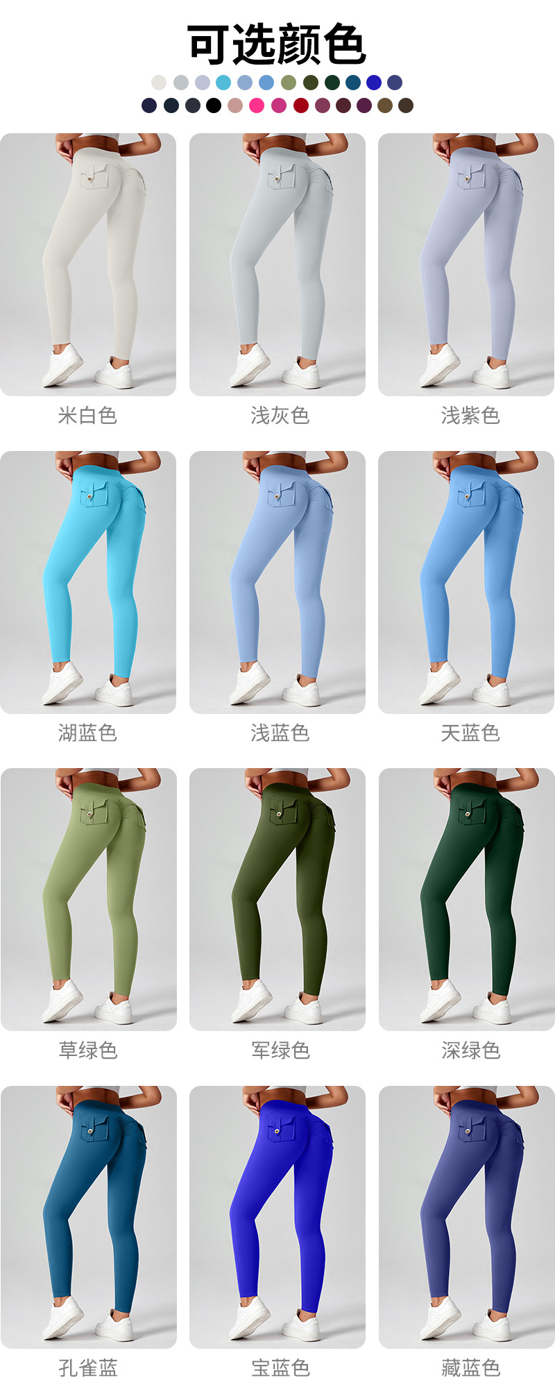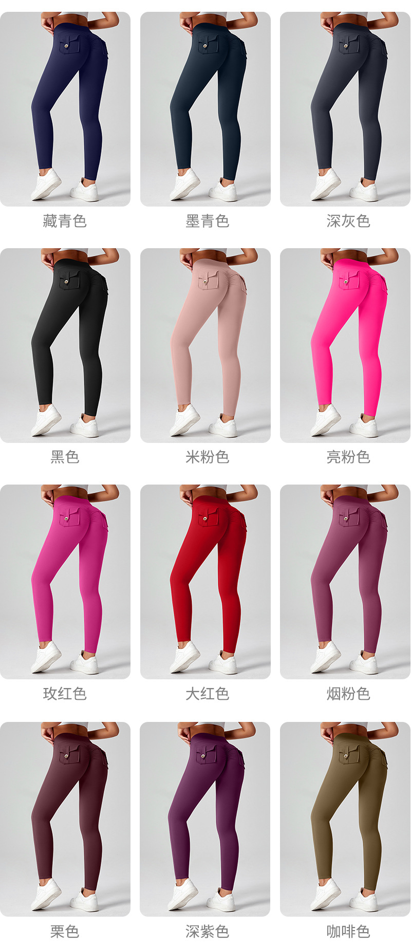 포켓 복숭아 엉덩이 피트니스 요가 바지 여성용 높은 허리 엉덩이 리프팅 알몸 샌딩 탄성 러닝 타이트 피트니스 바지