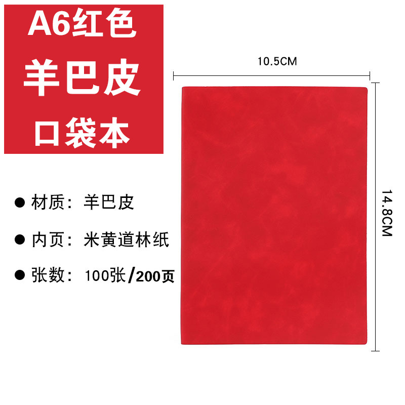 • A6 레드(양가죽) 80g 종이 일반 노트