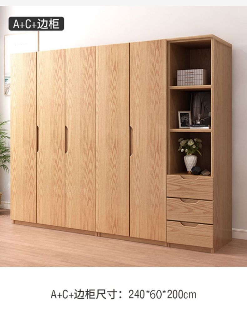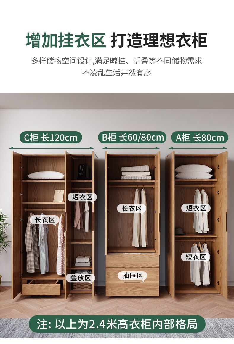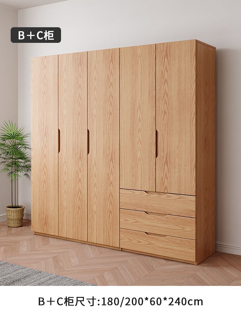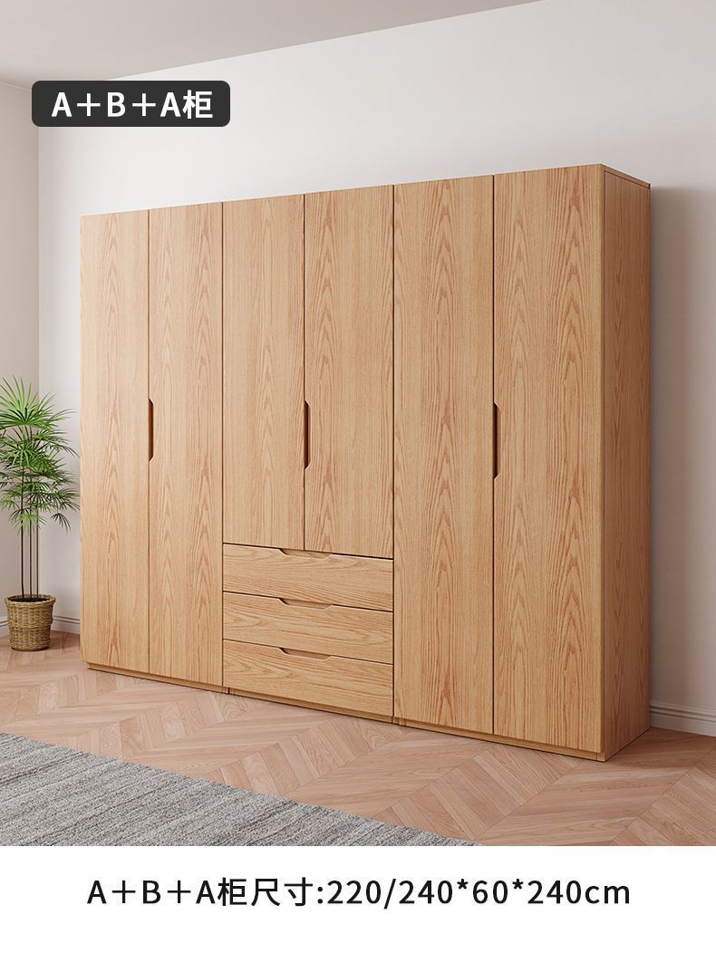 모든 솔리드 우드 오크 옷장 침실 가정용 노르딕 스타일 로그 스타일 플랫 도어 어린이 보관 캐비닛 작은 아파트 옷장스토어 가기