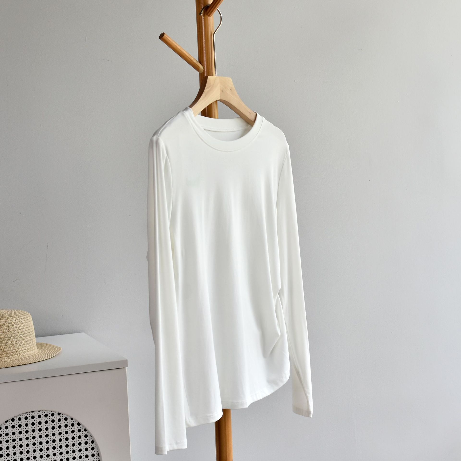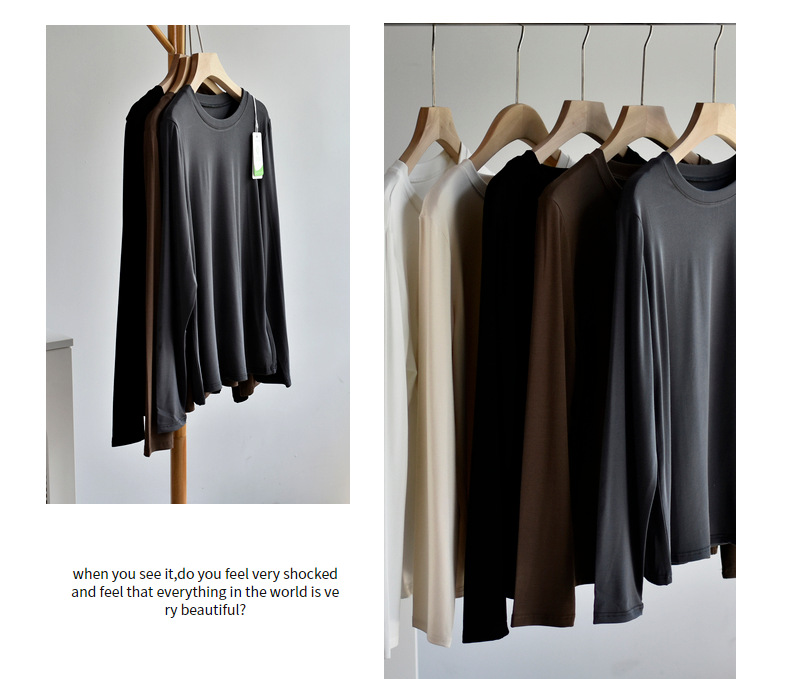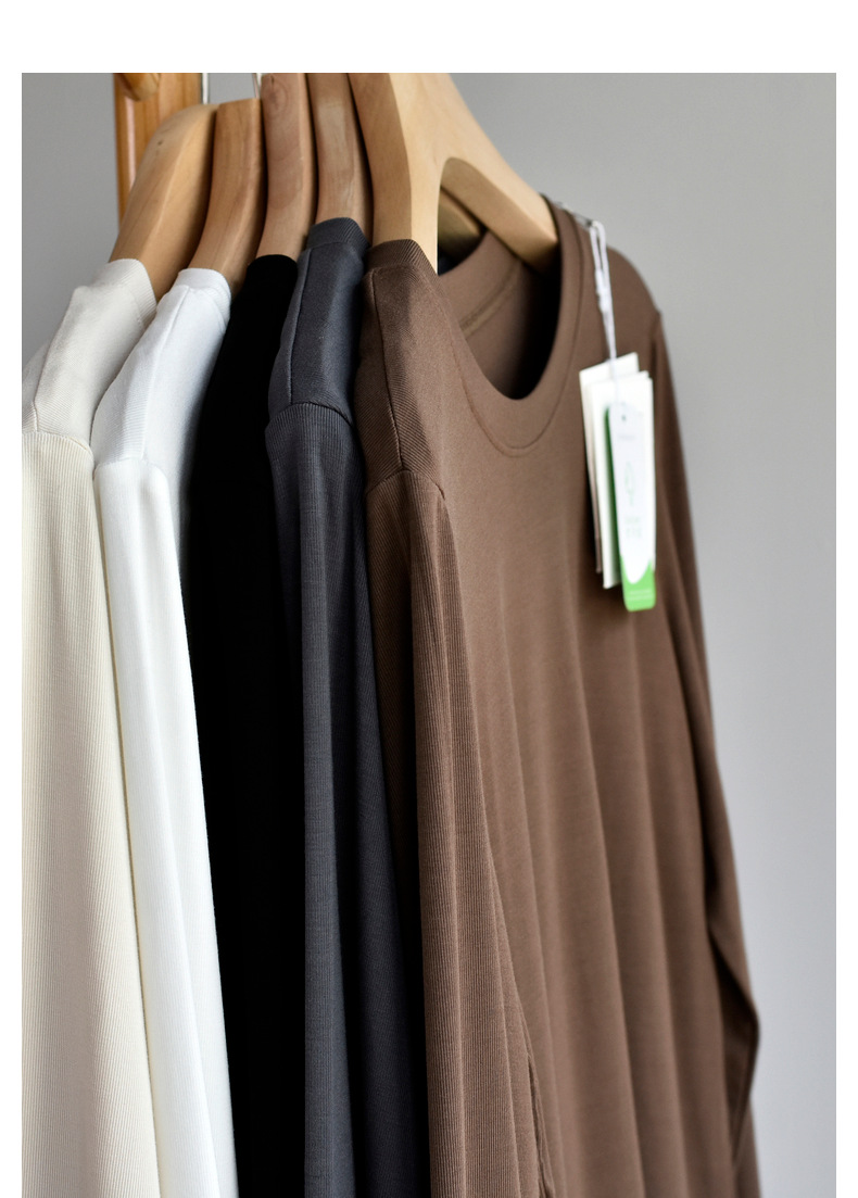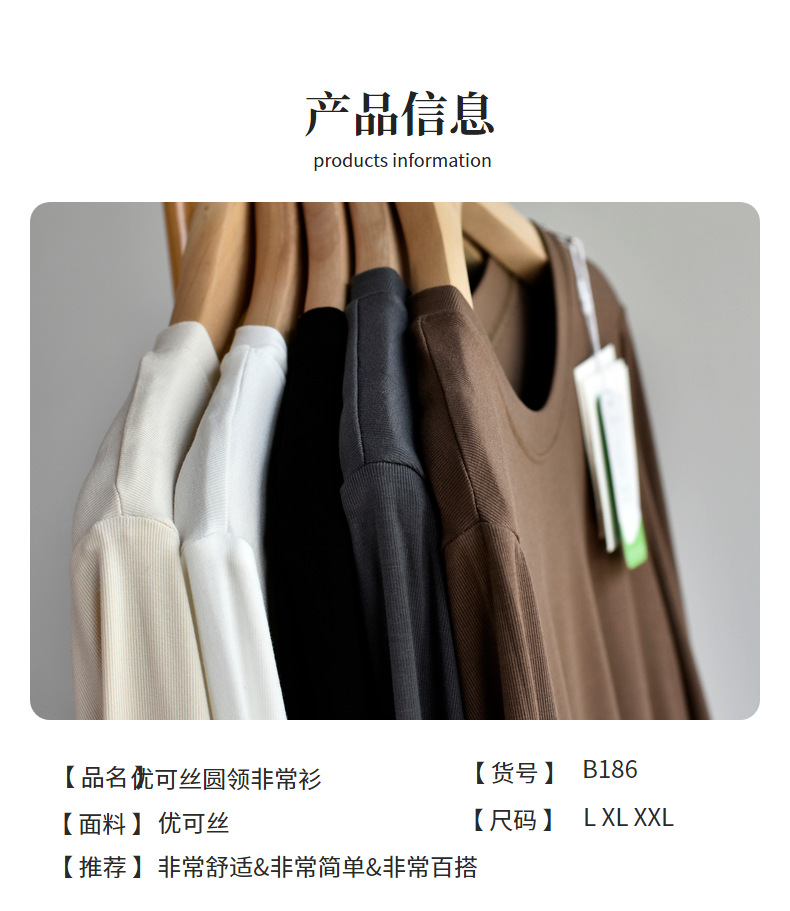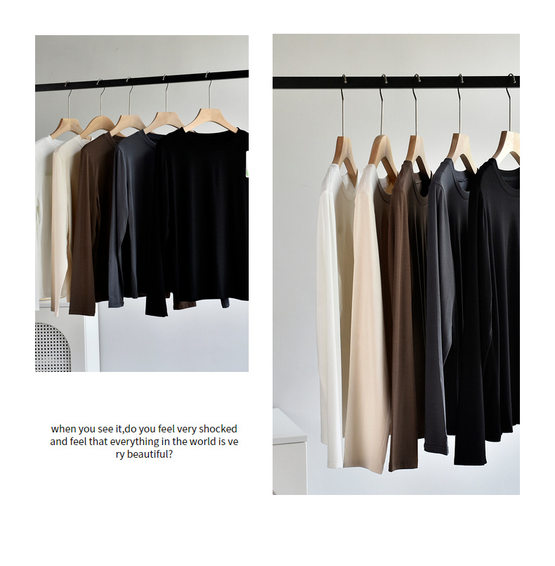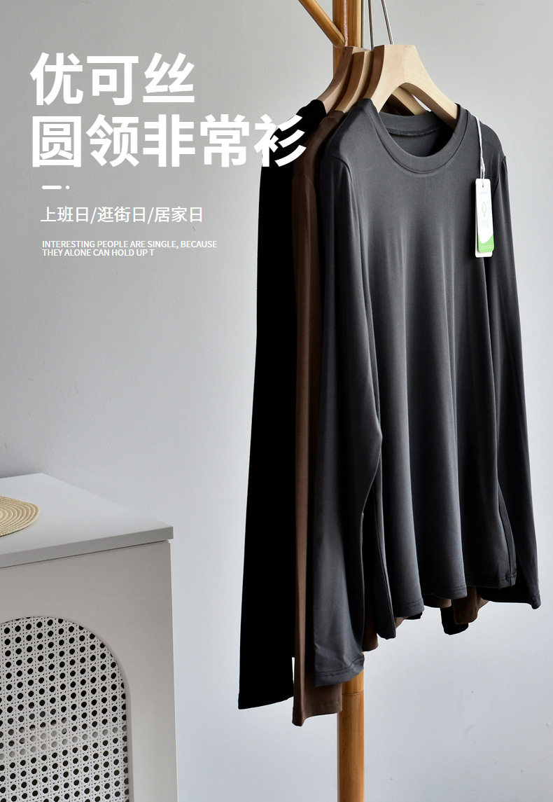 [라운드넥 셔츠] 25 가을 여성 신상 유코스 코튼 라운드넥 긴팔 티셔츠 여성용 베이직 셔츠스토어 가기