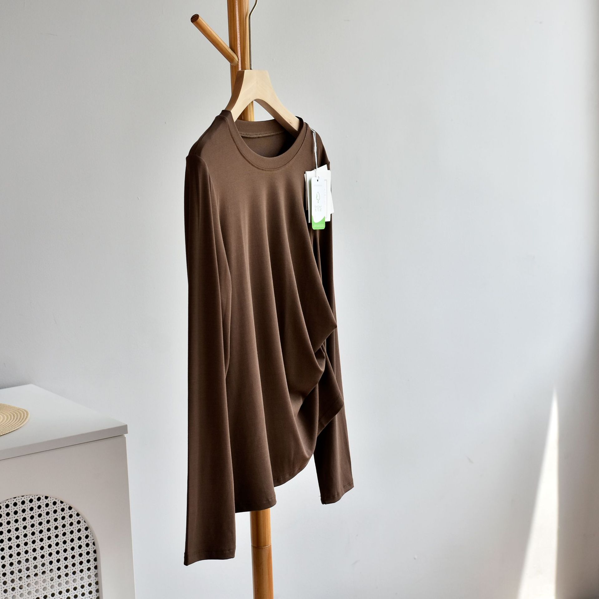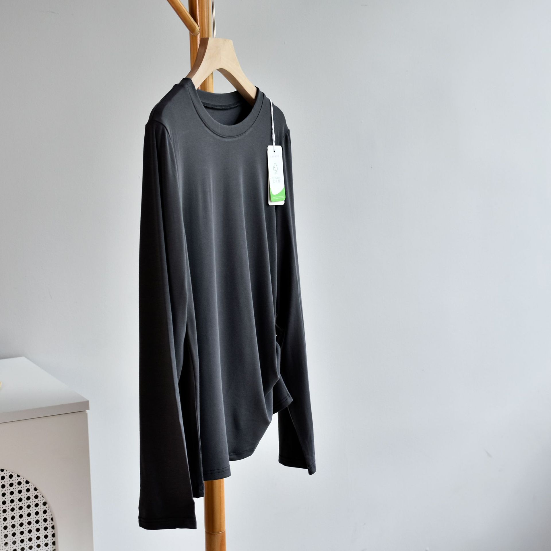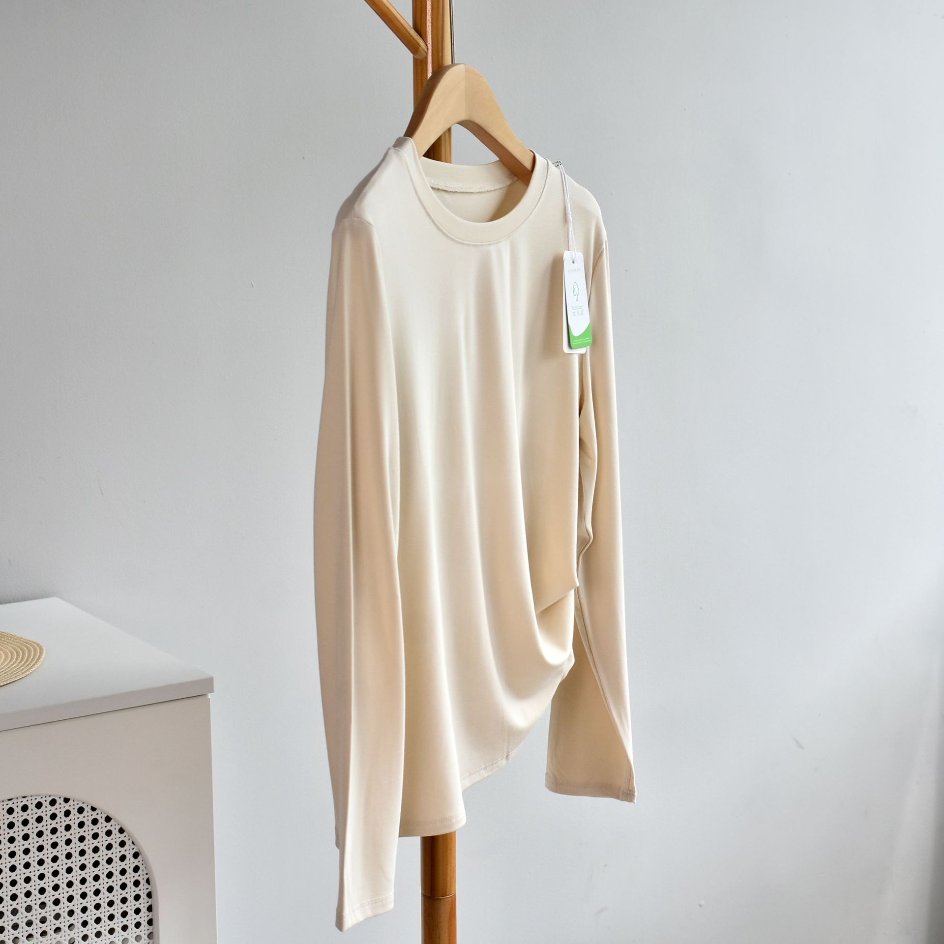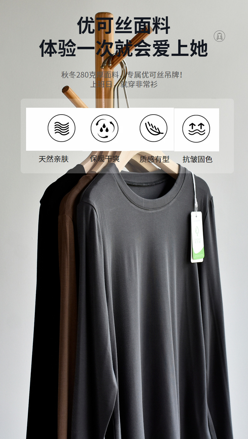 [라운드넥 셔츠] 25 가을 여성 신상 유코스 코튼 라운드넥 긴팔 티셔츠 여성용 베이직 셔츠스토어 가기