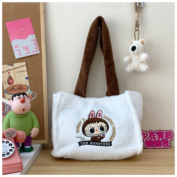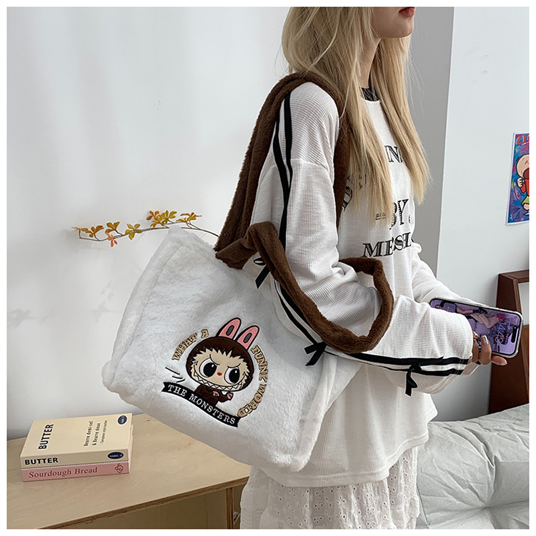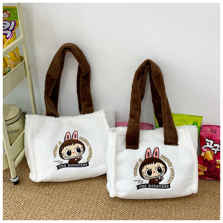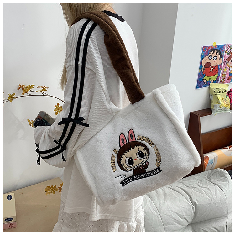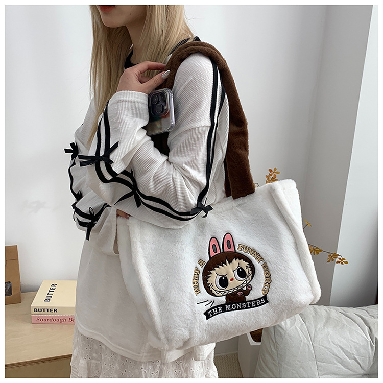 만화 귀여운 봉제 핸드백 만화 대용량 여성용 토트 백 캐주얼 올 매치 개인화 된 여성용 어깨 가방스토어 가기